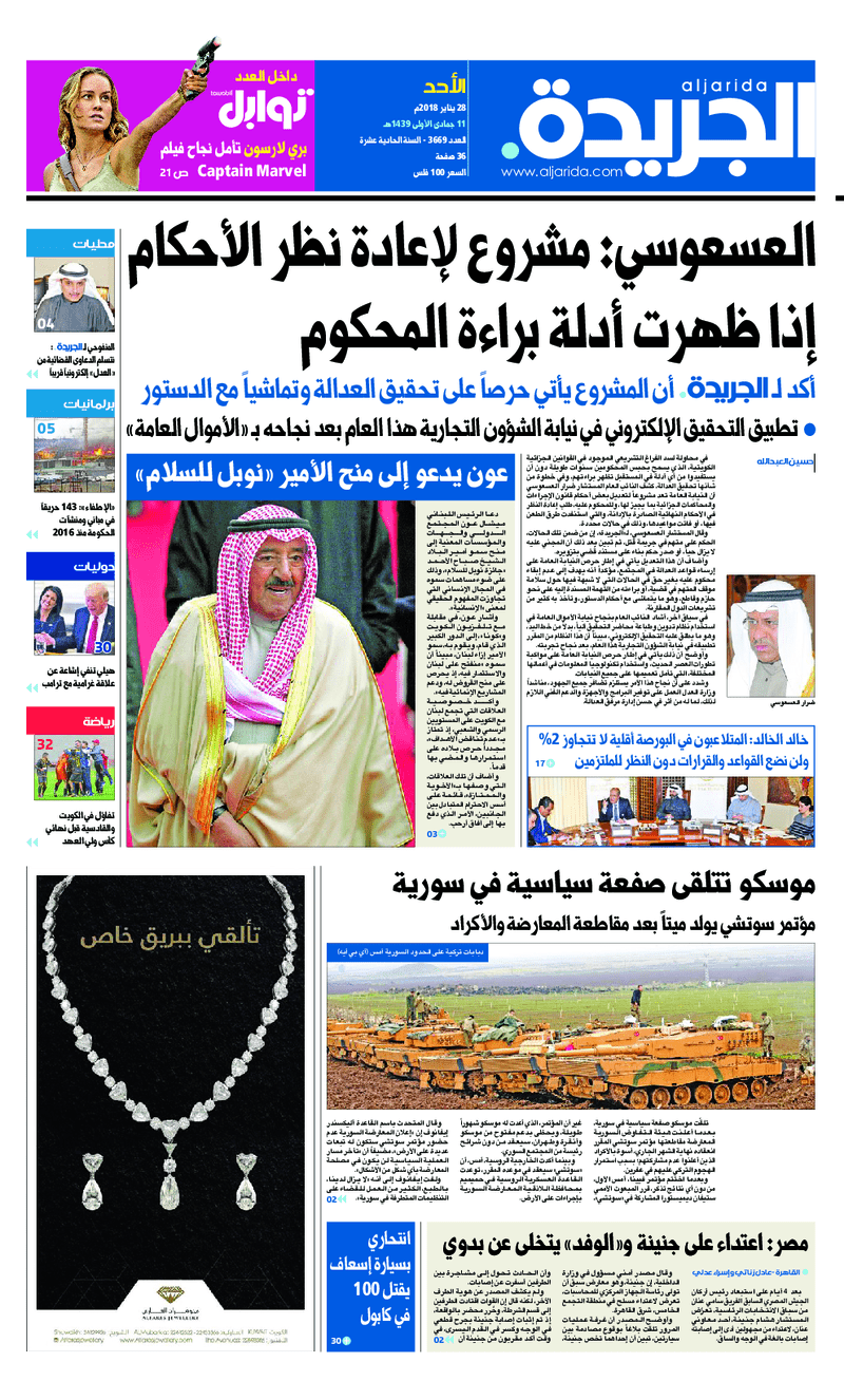 آخر الأخبار جرائم وقضايا “الجمارك” تضبط 29 ألف علبة مشروبات كحولية قادمة من دولة آسيوية في ميناء الشويخ 9 يونيو، 2024 محليات ممثلة عن دولة الكويت الطبيبة الكويتية أسماء الكندري تشارك في المؤتمر العالمي للمناظير في إيطاليا 8 يونيو، 2024 محليات “الصحة”: اكتمال وصول فريق الخدمات الطبية ببعثة الحج الكويتية لمكة المكرمة 8 يونيو، 2024 محليات “الصحة” تحدد 8 مراكز للصحة المدرسية لاستقبال الطلبة المبتعثين 8 يونيو، 2024 عربي وعالمي “الصحة العالمية”: تسجيل أول وفاة لشخص مصاب بـ«أنفلونزا الطيور» 7 يونيو، 2024 محليات عناوين الصحف الكويتية ليوم الأحد 28 يناير 2018 محرر المحليات28 يناير، 2018أضف تعليق1 دقائق جريدة الجريدة جريدة السياسة جريدة الوطن الوسومTop عناوين الصحف المحلية من الممكن أن يعجبك جرائم وقضايا “الجمارك” تضبط 29 ألف علبة مشروبات كحولية قادمة من دولة آسيوية في ميناء الشويخ محليات ممثلة عن دولة الكويت الطبيبة الكويتية أسماء الكندري تشارك في المؤتمر العالمي للمناظير في إيطاليا محليات “الصحة”: اكتمال وصول فريق الخدمات الطبية ببعثة الحج الكويتية لمكة المكرمة محليات “الصحة” تحدد 8 مراكز للصحة المدرسية لاستقبال الطلبة المبتعثين عربي وعالمي “الصحة العالمية”: تسجيل أول وفاة لشخص مصاب بـ«أنفلونزا الطيور» تكنولوجيا رش السحب بملح البحر.. تجربة “ثورية” لتبريد كوكب الأرض أضف تعليق أضغط هنا لإضافة تعليق إلغاء الردالتعليقالاسم البريد الإلكتروني الموقع الإلكتروني Δ هذا الموقع يستخدم خدمة أكيسميت للتقليل من البريد المزعجة. اعرف المزيد عن كيفية التعامل مع بيانات التعليقات الخاصة بك processed.