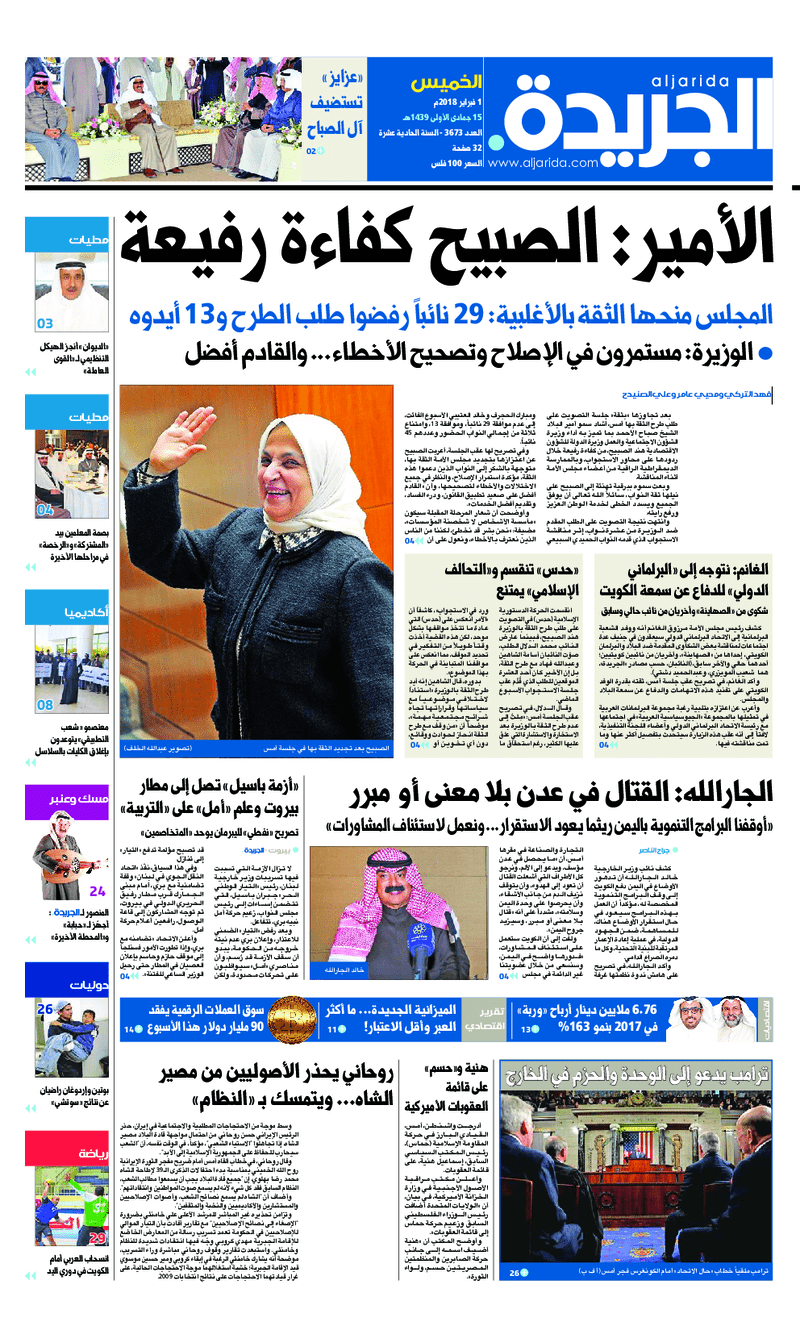 آخر الأخبار جرائم وقضايا “الجمارك” تضبط 29 ألف علبة مشروبات كحولية قادمة من دولة آسيوية في ميناء الشويخ 9 يونيو، 2024 محليات ممثلة عن دولة الكويت الطبيبة الكويتية أسماء الكندري تشارك في المؤتمر العالمي للمناظير في إيطاليا 8 يونيو، 2024 محليات “الصحة”: اكتمال وصول فريق الخدمات الطبية ببعثة الحج الكويتية لمكة المكرمة 8 يونيو، 2024 محليات “الصحة” تحدد 8 مراكز للصحة المدرسية لاستقبال الطلبة المبتعثين 8 يونيو، 2024 عربي وعالمي “الصحة العالمية”: تسجيل أول وفاة لشخص مصاب بـ«أنفلونزا الطيور» 7 يونيو، 2024 محليات عناوين الصحف الكويتية ليوم الخميس 01 فبراير 2018 محرر المحليات1 فبراير، 2018أضف تعليق1 دقائق جريدة الجريدة جريدة السياسة جريدة الوطن الوسومTop عناوين الصحف المحلية من الممكن أن يعجبك جرائم وقضايا “الجمارك” تضبط 29 ألف علبة مشروبات كحولية قادمة من دولة آسيوية في ميناء الشويخ محليات ممثلة عن دولة الكويت الطبيبة الكويتية أسماء الكندري تشارك في المؤتمر العالمي للمناظير في إيطاليا محليات “الصحة”: اكتمال وصول فريق الخدمات الطبية ببعثة الحج الكويتية لمكة المكرمة محليات “الصحة” تحدد 8 مراكز للصحة المدرسية لاستقبال الطلبة المبتعثين عربي وعالمي “الصحة العالمية”: تسجيل أول وفاة لشخص مصاب بـ«أنفلونزا الطيور» تكنولوجيا رش السحب بملح البحر.. تجربة “ثورية” لتبريد كوكب الأرض أضف تعليق أضغط هنا لإضافة تعليق إلغاء الردالتعليقالاسم البريد الإلكتروني الموقع الإلكتروني Δ هذا الموقع يستخدم خدمة أكيسميت للتقليل من البريد المزعجة. اعرف المزيد عن كيفية التعامل مع بيانات التعليقات الخاصة بك processed.