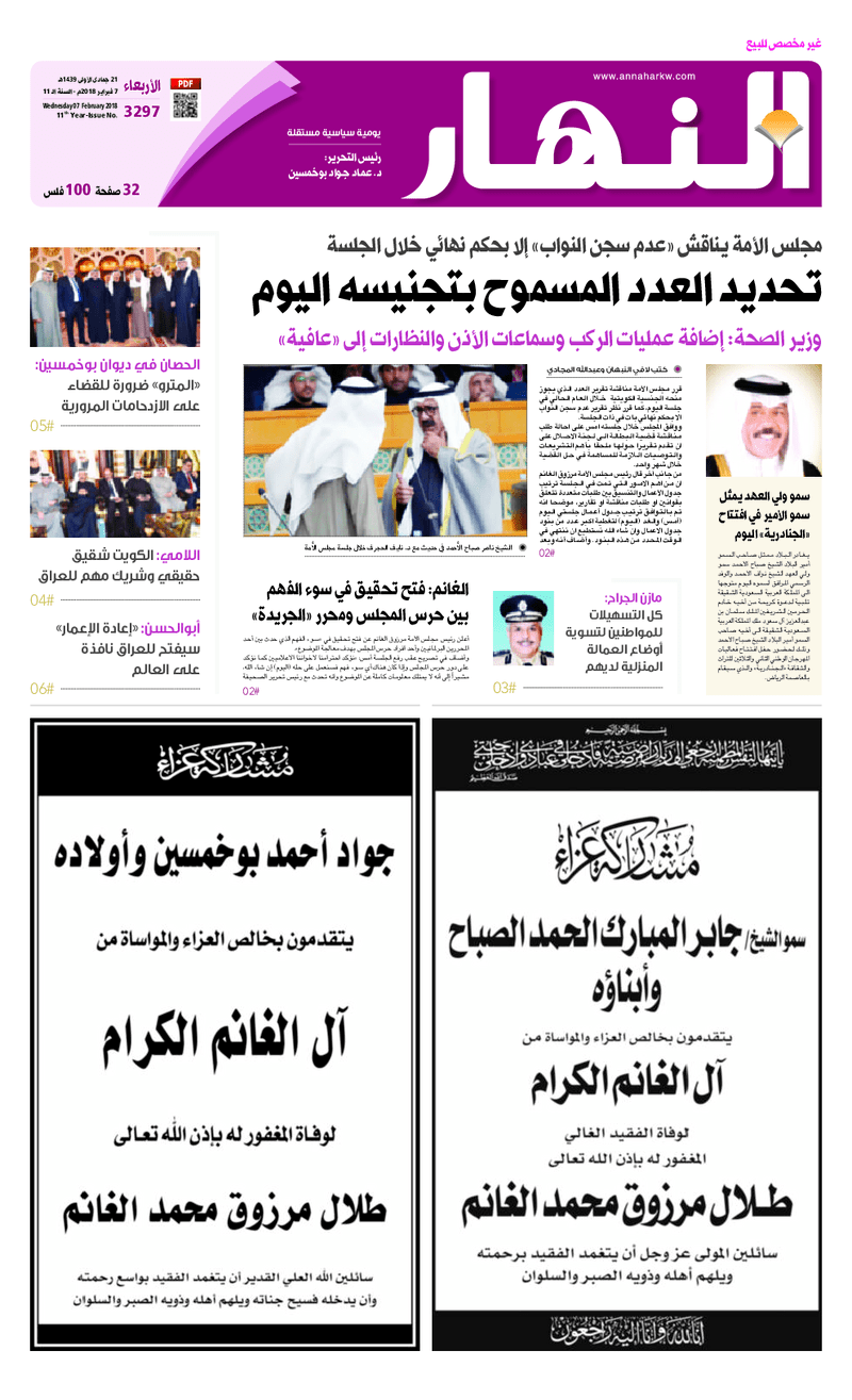 آخر الأخبار جرائم وقضايا “الجمارك” تضبط 29 ألف علبة مشروبات كحولية قادمة من دولة آسيوية في ميناء الشويخ 9 يونيو، 2024 محليات ممثلة عن دولة الكويت الطبيبة الكويتية أسماء الكندري تشارك في المؤتمر العالمي للمناظير في إيطاليا 8 يونيو، 2024 محليات “الصحة”: اكتمال وصول فريق الخدمات الطبية ببعثة الحج الكويتية لمكة المكرمة 8 يونيو، 2024 محليات “الصحة” تحدد 8 مراكز للصحة المدرسية لاستقبال الطلبة المبتعثين 8 يونيو، 2024 عربي وعالمي “الصحة العالمية”: تسجيل أول وفاة لشخص مصاب بـ«أنفلونزا الطيور» 7 يونيو، 2024 محليات عناوين الصحف الكويتية ليوم الأربعاء 07 فبراير 2018 محرر المحليات7 فبراير، 2018أضف تعليق1 دقائق جريدة الجريدة جريدة السياسة جريدة النهار الوسومTop عناوين الصحف المحلية من الممكن أن يعجبك جرائم وقضايا “الجمارك” تضبط 29 ألف علبة مشروبات كحولية قادمة من دولة آسيوية في ميناء الشويخ محليات ممثلة عن دولة الكويت الطبيبة الكويتية أسماء الكندري تشارك في المؤتمر العالمي للمناظير في إيطاليا محليات “الصحة”: اكتمال وصول فريق الخدمات الطبية ببعثة الحج الكويتية لمكة المكرمة محليات “الصحة” تحدد 8 مراكز للصحة المدرسية لاستقبال الطلبة المبتعثين عربي وعالمي “الصحة العالمية”: تسجيل أول وفاة لشخص مصاب بـ«أنفلونزا الطيور» تكنولوجيا رش السحب بملح البحر.. تجربة “ثورية” لتبريد كوكب الأرض أضف تعليق أضغط هنا لإضافة تعليق إلغاء الردالتعليقالاسم البريد الإلكتروني الموقع الإلكتروني Δ هذا الموقع يستخدم خدمة أكيسميت للتقليل من البريد المزعجة. اعرف المزيد عن كيفية التعامل مع بيانات التعليقات الخاصة بك processed.