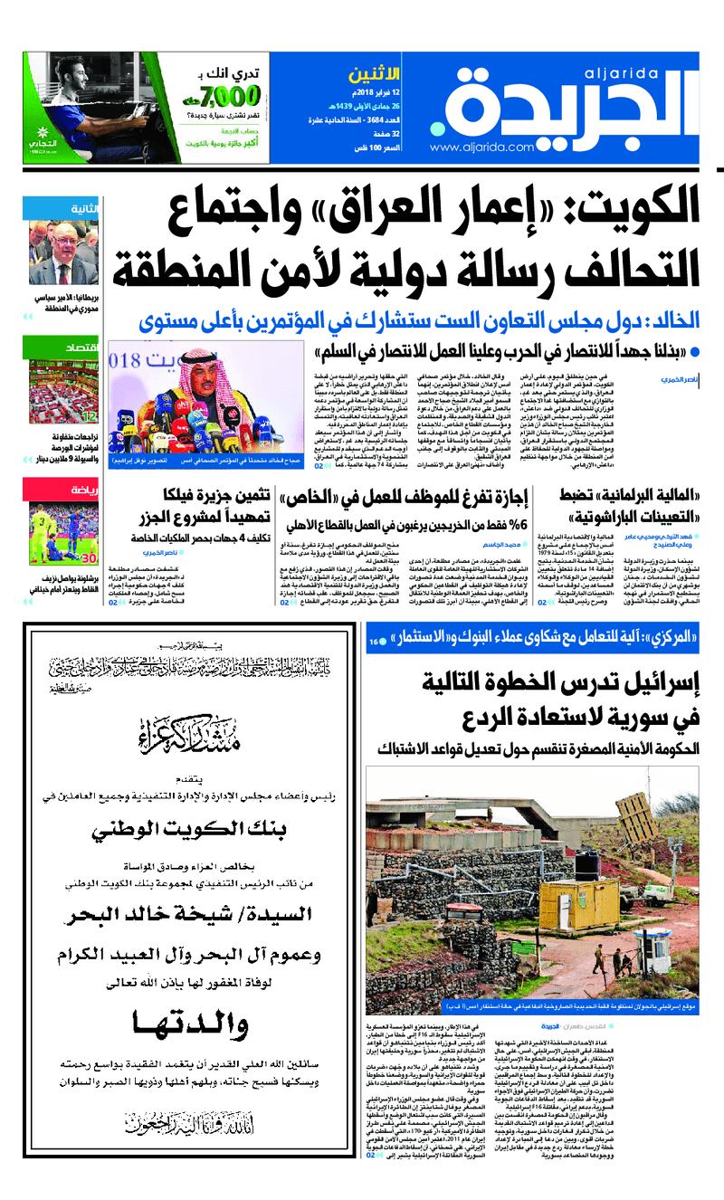آخر الأخبار جرائم وقضايا “الجمارك” تضبط 29 ألف علبة مشروبات كحولية قادمة من دولة آسيوية في ميناء الشويخ 9 يونيو، 2024 محليات ممثلة عن دولة الكويت الطبيبة الكويتية أسماء الكندري تشارك في المؤتمر العالمي للمناظير في إيطاليا 8 يونيو، 2024 محليات “الصحة”: اكتمال وصول فريق الخدمات الطبية ببعثة الحج الكويتية لمكة المكرمة 8 يونيو، 2024 محليات “الصحة” تحدد 8 مراكز للصحة المدرسية لاستقبال الطلبة المبتعثين 8 يونيو، 2024 عربي وعالمي “الصحة العالمية”: تسجيل أول وفاة لشخص مصاب بـ«أنفلونزا الطيور» 7 يونيو، 2024 محليات عناوين الصحف الكويتية ليوم الاثنين 12 فبراير 2018 محرر المحليات12 فبراير، 2018أضف تعليق1 دقائق جريدة الجريدة جريدة السياسة جريدة الوطن جريدة النهار الوسومTop عناوين الصحف المحلية من الممكن أن يعجبك جرائم وقضايا “الجمارك” تضبط 29 ألف علبة مشروبات كحولية قادمة من دولة آسيوية في ميناء الشويخ محليات ممثلة عن دولة الكويت الطبيبة الكويتية أسماء الكندري تشارك في المؤتمر العالمي للمناظير في إيطاليا محليات “الصحة”: اكتمال وصول فريق الخدمات الطبية ببعثة الحج الكويتية لمكة المكرمة محليات “الصحة” تحدد 8 مراكز للصحة المدرسية لاستقبال الطلبة المبتعثين عربي وعالمي “الصحة العالمية”: تسجيل أول وفاة لشخص مصاب بـ«أنفلونزا الطيور» تكنولوجيا رش السحب بملح البحر.. تجربة “ثورية” لتبريد كوكب الأرض أضف تعليق أضغط هنا لإضافة تعليق إلغاء الردالتعليقالاسم البريد الإلكتروني الموقع الإلكتروني Δ هذا الموقع يستخدم خدمة أكيسميت للتقليل من البريد المزعجة. اعرف المزيد عن كيفية التعامل مع بيانات التعليقات الخاصة بك processed.
