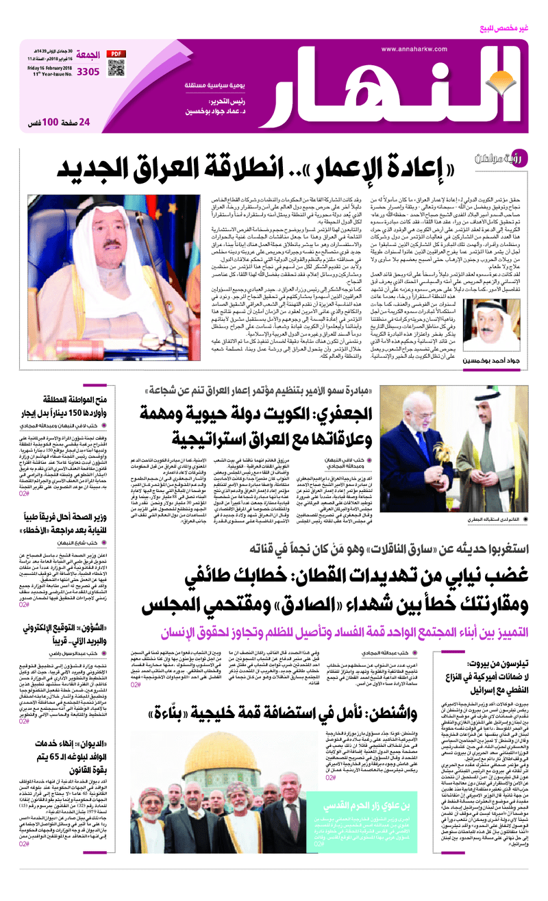 آخر الأخبار جرائم وقضايا “الجمارك” تضبط 29 ألف علبة مشروبات كحولية قادمة من دولة آسيوية في ميناء الشويخ 9 يونيو، 2024 محليات ممثلة عن دولة الكويت الطبيبة الكويتية أسماء الكندري تشارك في المؤتمر العالمي للمناظير في إيطاليا 8 يونيو، 2024 محليات “الصحة”: اكتمال وصول فريق الخدمات الطبية ببعثة الحج الكويتية لمكة المكرمة 8 يونيو، 2024 محليات “الصحة” تحدد 8 مراكز للصحة المدرسية لاستقبال الطلبة المبتعثين 8 يونيو، 2024 عربي وعالمي “الصحة العالمية”: تسجيل أول وفاة لشخص مصاب بـ«أنفلونزا الطيور» 7 يونيو، 2024 محليات عناوين الصحف الكويتية ليوم الجمعة 16 فبراير 2018 محرر المحليات16 فبراير، 2018أضف تعليق1 دقائق جريدة الجريدة جريدة السياسة جريدة الوطن جريدة النهار الوسومTop عناوين الصحف المحلية من الممكن أن يعجبك جرائم وقضايا “الجمارك” تضبط 29 ألف علبة مشروبات كحولية قادمة من دولة آسيوية في ميناء الشويخ محليات ممثلة عن دولة الكويت الطبيبة الكويتية أسماء الكندري تشارك في المؤتمر العالمي للمناظير في إيطاليا محليات “الصحة”: اكتمال وصول فريق الخدمات الطبية ببعثة الحج الكويتية لمكة المكرمة محليات “الصحة” تحدد 8 مراكز للصحة المدرسية لاستقبال الطلبة المبتعثين عربي وعالمي “الصحة العالمية”: تسجيل أول وفاة لشخص مصاب بـ«أنفلونزا الطيور» تكنولوجيا رش السحب بملح البحر.. تجربة “ثورية” لتبريد كوكب الأرض أضف تعليق أضغط هنا لإضافة تعليق إلغاء الردالتعليقالاسم البريد الإلكتروني الموقع الإلكتروني Δ هذا الموقع يستخدم خدمة أكيسميت للتقليل من البريد المزعجة. اعرف المزيد عن كيفية التعامل مع بيانات التعليقات الخاصة بك processed.