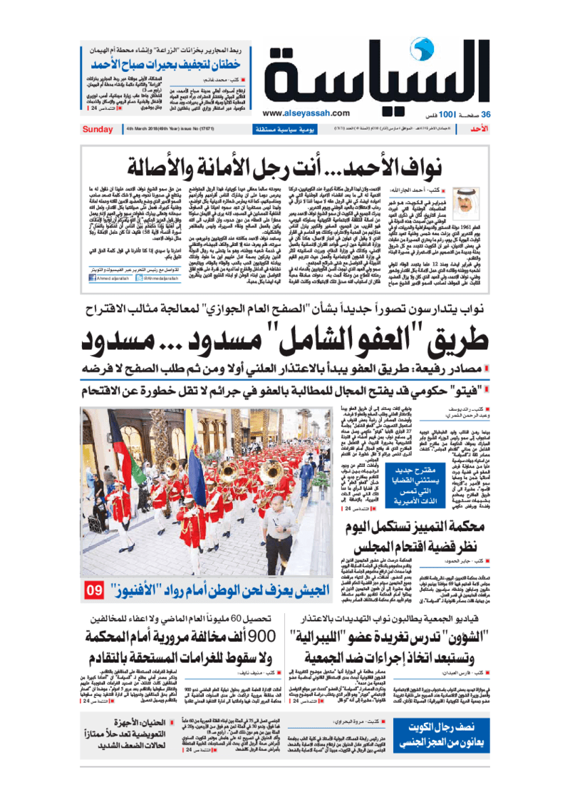 آخر الأخبار جرائم وقضايا “الجمارك” تضبط 29 ألف علبة مشروبات كحولية قادمة من دولة آسيوية في ميناء الشويخ 9 يونيو، 2024 محليات ممثلة عن دولة الكويت الطبيبة الكويتية أسماء الكندري تشارك في المؤتمر العالمي للمناظير في إيطاليا 8 يونيو، 2024 محليات “الصحة”: اكتمال وصول فريق الخدمات الطبية ببعثة الحج الكويتية لمكة المكرمة 8 يونيو، 2024 محليات “الصحة” تحدد 8 مراكز للصحة المدرسية لاستقبال الطلبة المبتعثين 8 يونيو، 2024 عربي وعالمي “الصحة العالمية”: تسجيل أول وفاة لشخص مصاب بـ«أنفلونزا الطيور» 7 يونيو، 2024 محليات عناوين الصحف الكويتية ليوم الأحد 04 مارس 2018 محرر المحليات4 مارس، 2018أضف تعليق1 دقائق جريدة الجريدة جريدة السياسة جريدة الوطن الوسومTop عناوين الصحف المحلية من الممكن أن يعجبك جرائم وقضايا “الجمارك” تضبط 29 ألف علبة مشروبات كحولية قادمة من دولة آسيوية في ميناء الشويخ محليات ممثلة عن دولة الكويت الطبيبة الكويتية أسماء الكندري تشارك في المؤتمر العالمي للمناظير في إيطاليا محليات “الصحة”: اكتمال وصول فريق الخدمات الطبية ببعثة الحج الكويتية لمكة المكرمة محليات “الصحة” تحدد 8 مراكز للصحة المدرسية لاستقبال الطلبة المبتعثين عربي وعالمي “الصحة العالمية”: تسجيل أول وفاة لشخص مصاب بـ«أنفلونزا الطيور» تكنولوجيا رش السحب بملح البحر.. تجربة “ثورية” لتبريد كوكب الأرض أضف تعليق أضغط هنا لإضافة تعليق إلغاء الردالتعليقالاسم البريد الإلكتروني الموقع الإلكتروني Δ هذا الموقع يستخدم خدمة أكيسميت للتقليل من البريد المزعجة. اعرف المزيد عن كيفية التعامل مع بيانات التعليقات الخاصة بك processed.