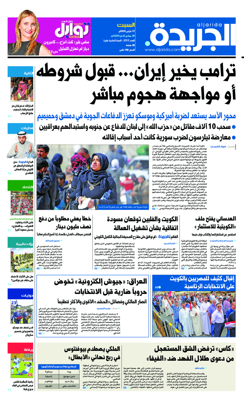 آخر الأخبار جرائم وقضايا “الجمارك” تضبط 29 ألف علبة مشروبات كحولية قادمة من دولة آسيوية في ميناء الشويخ 9 يونيو، 2024 محليات ممثلة عن دولة الكويت الطبيبة الكويتية أسماء الكندري تشارك في المؤتمر العالمي للمناظير في إيطاليا 8 يونيو، 2024 محليات “الصحة”: اكتمال وصول فريق الخدمات الطبية ببعثة الحج الكويتية لمكة المكرمة 8 يونيو، 2024 محليات “الصحة” تحدد 8 مراكز للصحة المدرسية لاستقبال الطلبة المبتعثين 8 يونيو، 2024 عربي وعالمي “الصحة العالمية”: تسجيل أول وفاة لشخص مصاب بـ«أنفلونزا الطيور» 7 يونيو، 2024 محليات عناوين الصحف الكويتية ليوم السبت 17 مارس 2018 محرر المحليات17 مارس، 2018أضف تعليق1 دقائق جريدة الجريدة الوسومTop عناوين الصحف المحلية من الممكن أن يعجبك جرائم وقضايا “الجمارك” تضبط 29 ألف علبة مشروبات كحولية قادمة من دولة آسيوية في ميناء الشويخ محليات ممثلة عن دولة الكويت الطبيبة الكويتية أسماء الكندري تشارك في المؤتمر العالمي للمناظير في إيطاليا محليات “الصحة”: اكتمال وصول فريق الخدمات الطبية ببعثة الحج الكويتية لمكة المكرمة محليات “الصحة” تحدد 8 مراكز للصحة المدرسية لاستقبال الطلبة المبتعثين عربي وعالمي “الصحة العالمية”: تسجيل أول وفاة لشخص مصاب بـ«أنفلونزا الطيور» تكنولوجيا رش السحب بملح البحر.. تجربة “ثورية” لتبريد كوكب الأرض أضف تعليق أضغط هنا لإضافة تعليق إلغاء الردالتعليقالاسم البريد الإلكتروني الموقع الإلكتروني Δ هذا الموقع يستخدم خدمة أكيسميت للتقليل من البريد المزعجة. اعرف المزيد عن كيفية التعامل مع بيانات التعليقات الخاصة بك processed.