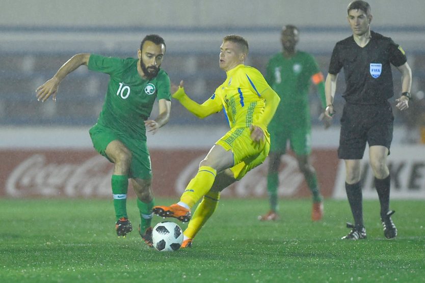 سجلت أوكرانيا أولا في الدقيقة 33 عن طريق ارتيم كرافتس، وتعادل فهد المولد، للمنتخب السعودي في الدقيقة 38.
