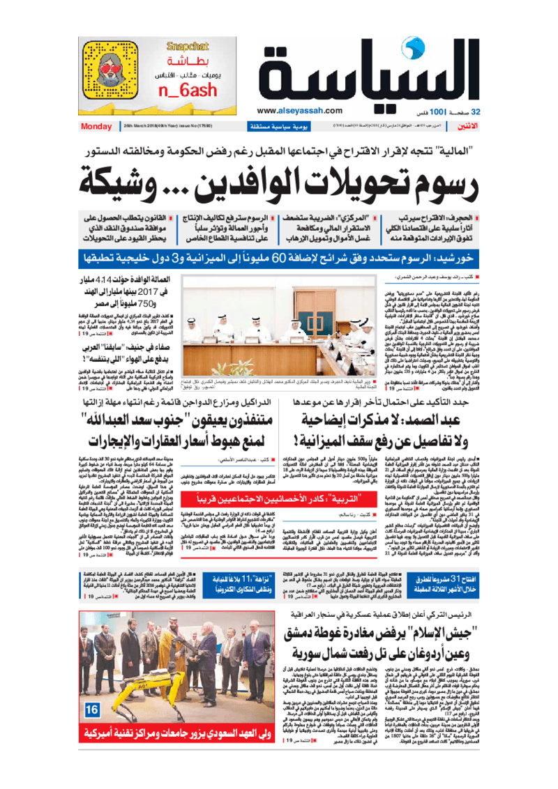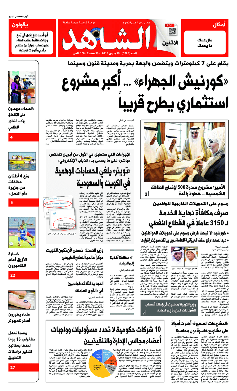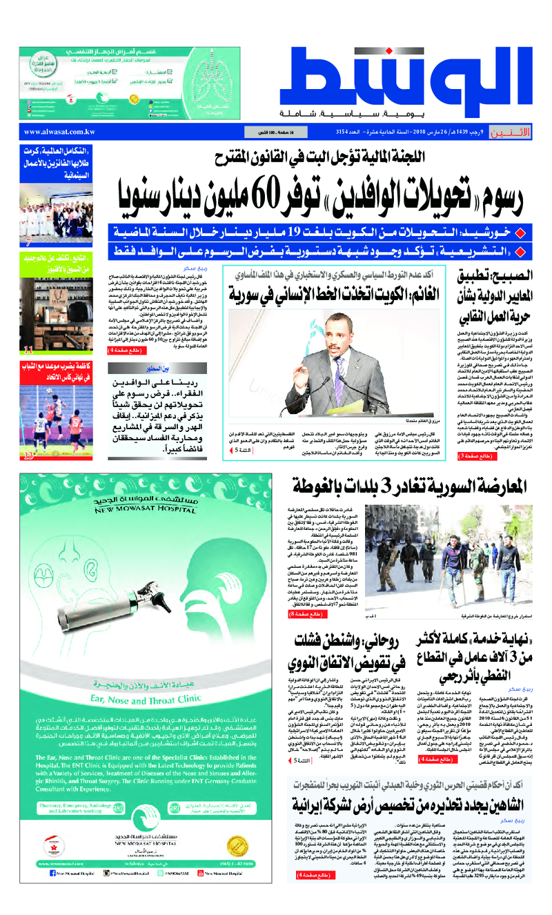 آخر الأخبار جرائم وقضايا “الجمارك” تضبط 29 ألف علبة مشروبات كحولية قادمة من دولة آسيوية في ميناء الشويخ 9 يونيو، 2024 محليات ممثلة عن دولة الكويت الطبيبة الكويتية أسماء الكندري تشارك في المؤتمر العالمي للمناظير في إيطاليا 8 يونيو، 2024 محليات “الصحة”: اكتمال وصول فريق الخدمات الطبية ببعثة الحج الكويتية لمكة المكرمة 8 يونيو، 2024 محليات “الصحة” تحدد 8 مراكز للصحة المدرسية لاستقبال الطلبة المبتعثين 8 يونيو، 2024 عربي وعالمي “الصحة العالمية”: تسجيل أول وفاة لشخص مصاب بـ«أنفلونزا الطيور» 7 يونيو، 2024 محليات عناوين الصحف الكويتية ليوم الاثنين 26 مارس 2018 محرر المحليات26 مارس، 2018أضف تعليق1 دقائق جريدة الجريدة جريدة الأنباء جريدة القبس جريدة السياسة جريدة الوطن جريدة الراي جريدة الوسط جريدة الشاهد الوسومTop عناوين الصحف المحلية من الممكن أن يعجبك جرائم وقضايا “الجمارك” تضبط 29 ألف علبة مشروبات كحولية قادمة من دولة آسيوية في ميناء الشويخ محليات ممثلة عن دولة الكويت الطبيبة الكويتية أسماء الكندري تشارك في المؤتمر العالمي للمناظير في إيطاليا محليات “الصحة”: اكتمال وصول فريق الخدمات الطبية ببعثة الحج الكويتية لمكة المكرمة محليات “الصحة” تحدد 8 مراكز للصحة المدرسية لاستقبال الطلبة المبتعثين عربي وعالمي “الصحة العالمية”: تسجيل أول وفاة لشخص مصاب بـ«أنفلونزا الطيور» تكنولوجيا رش السحب بملح البحر.. تجربة “ثورية” لتبريد كوكب الأرض أضف تعليق أضغط هنا لإضافة تعليق إلغاء الردالتعليقالاسم البريد الإلكتروني الموقع الإلكتروني Δ هذا الموقع يستخدم خدمة أكيسميت للتقليل من البريد المزعجة. اعرف المزيد عن كيفية التعامل مع بيانات التعليقات الخاصة بك processed.
