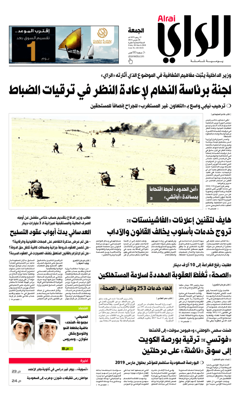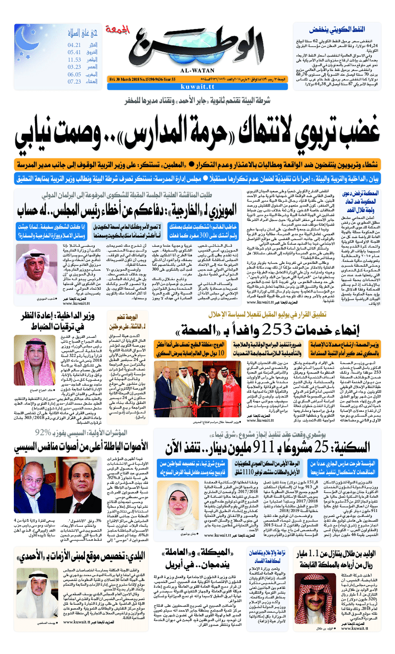 آخر الأخبار جرائم وقضايا “الجمارك” تضبط 29 ألف علبة مشروبات كحولية قادمة من دولة آسيوية في ميناء الشويخ 9 يونيو، 2024 محليات ممثلة عن دولة الكويت الطبيبة الكويتية أسماء الكندري تشارك في المؤتمر العالمي للمناظير في إيطاليا 8 يونيو، 2024 محليات “الصحة”: اكتمال وصول فريق الخدمات الطبية ببعثة الحج الكويتية لمكة المكرمة 8 يونيو، 2024 محليات “الصحة” تحدد 8 مراكز للصحة المدرسية لاستقبال الطلبة المبتعثين 8 يونيو، 2024 عربي وعالمي “الصحة العالمية”: تسجيل أول وفاة لشخص مصاب بـ«أنفلونزا الطيور» 7 يونيو، 2024 محليات عناوين الصحف الكويتية ليوم الجمعة 30 مارس 2018 محرر المحليات30 مارس، 2018أضف تعليق1 دقائق جريدة الجريدة جريدة الأنباء جريدة القبس جريدة السياسة جريدة الوطن جريدة الراي جريدة النهار الوسومTop عناوين الصحف المحلية من الممكن أن يعجبك جرائم وقضايا “الجمارك” تضبط 29 ألف علبة مشروبات كحولية قادمة من دولة آسيوية في ميناء الشويخ محليات ممثلة عن دولة الكويت الطبيبة الكويتية أسماء الكندري تشارك في المؤتمر العالمي للمناظير في إيطاليا محليات “الصحة”: اكتمال وصول فريق الخدمات الطبية ببعثة الحج الكويتية لمكة المكرمة محليات “الصحة” تحدد 8 مراكز للصحة المدرسية لاستقبال الطلبة المبتعثين عربي وعالمي “الصحة العالمية”: تسجيل أول وفاة لشخص مصاب بـ«أنفلونزا الطيور» تكنولوجيا رش السحب بملح البحر.. تجربة “ثورية” لتبريد كوكب الأرض أضف تعليق أضغط هنا لإضافة تعليق إلغاء الردالتعليقالاسم البريد الإلكتروني الموقع الإلكتروني Δ هذا الموقع يستخدم خدمة أكيسميت للتقليل من البريد المزعجة. اعرف المزيد عن كيفية التعامل مع بيانات التعليقات الخاصة بك processed.