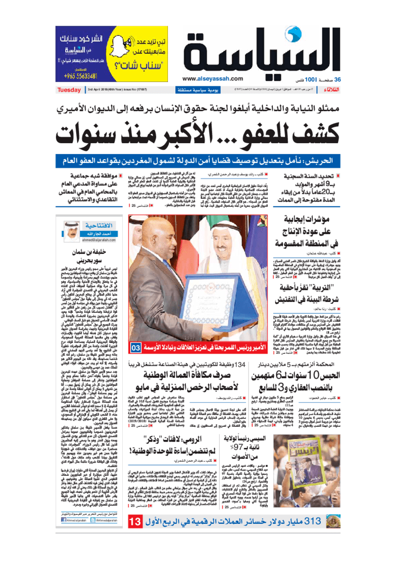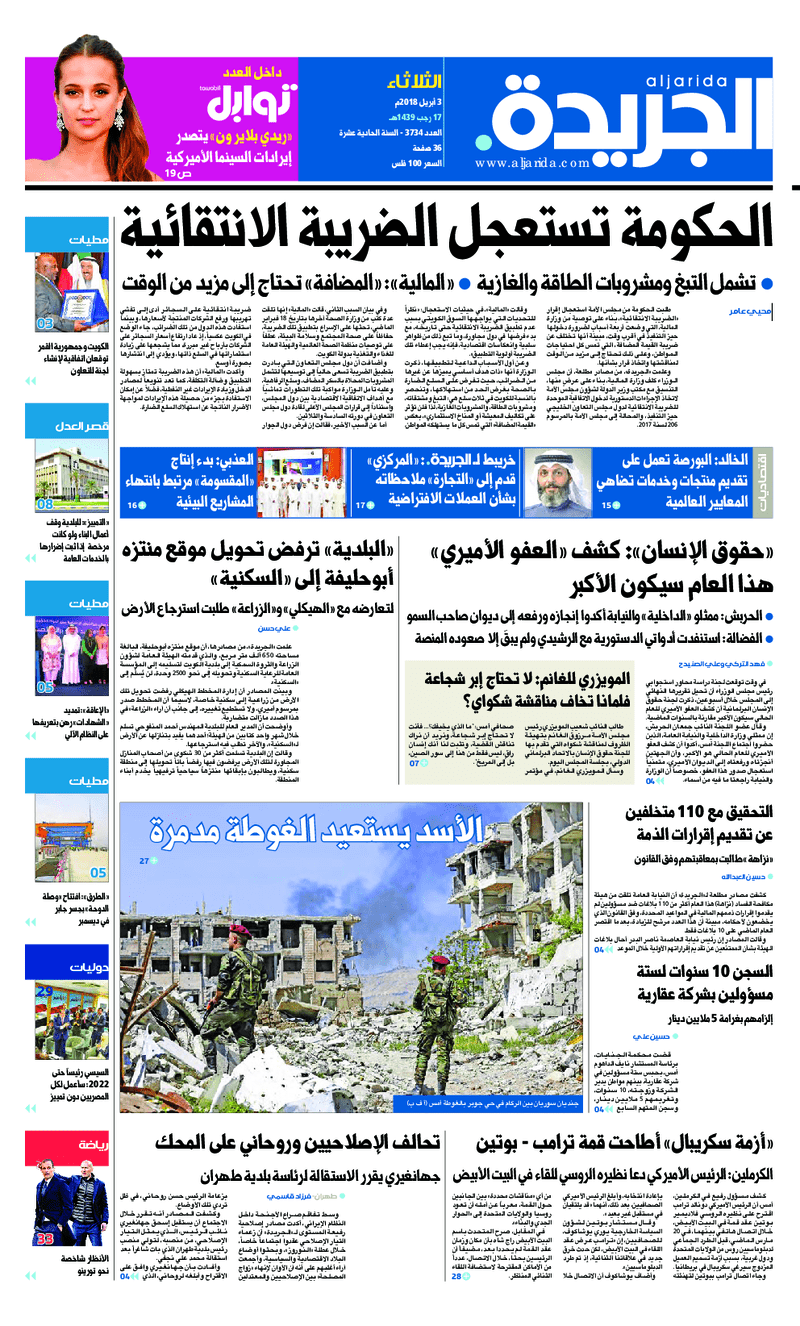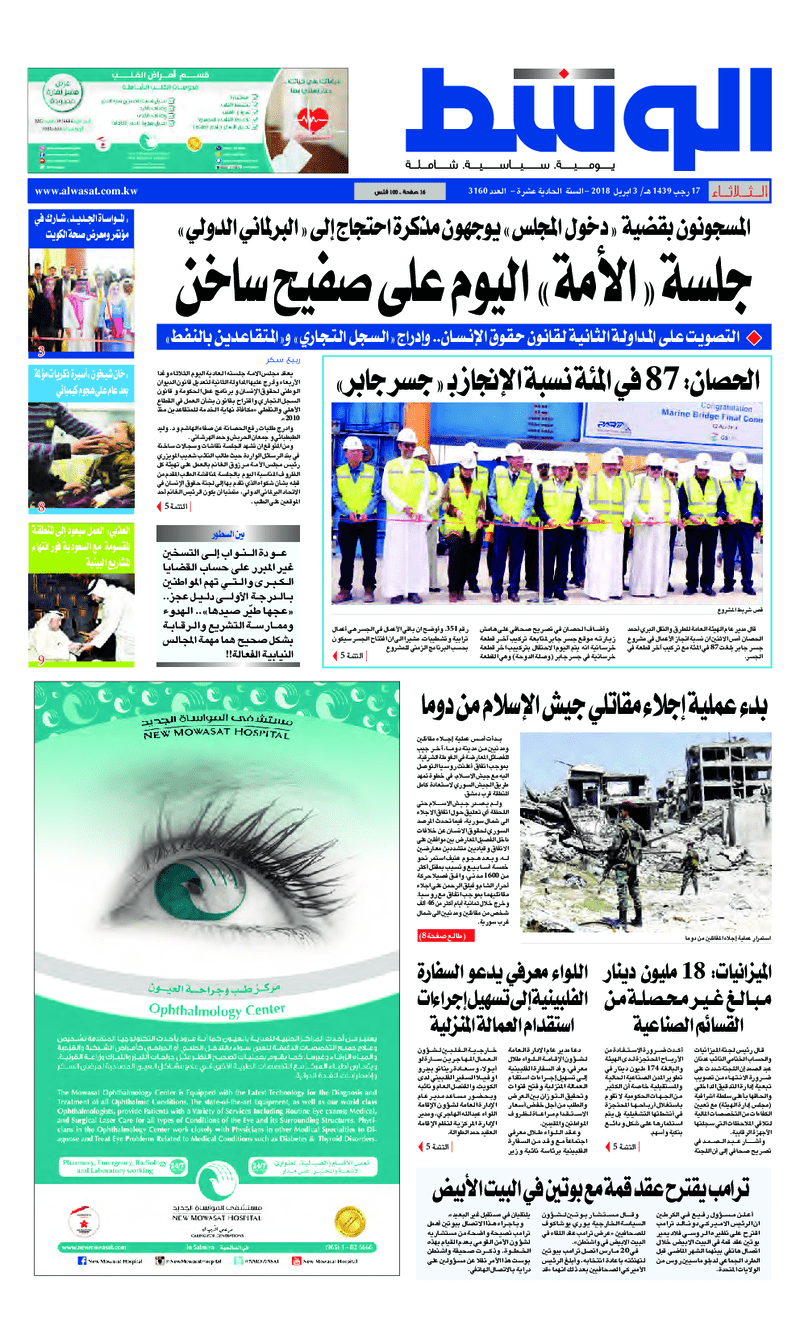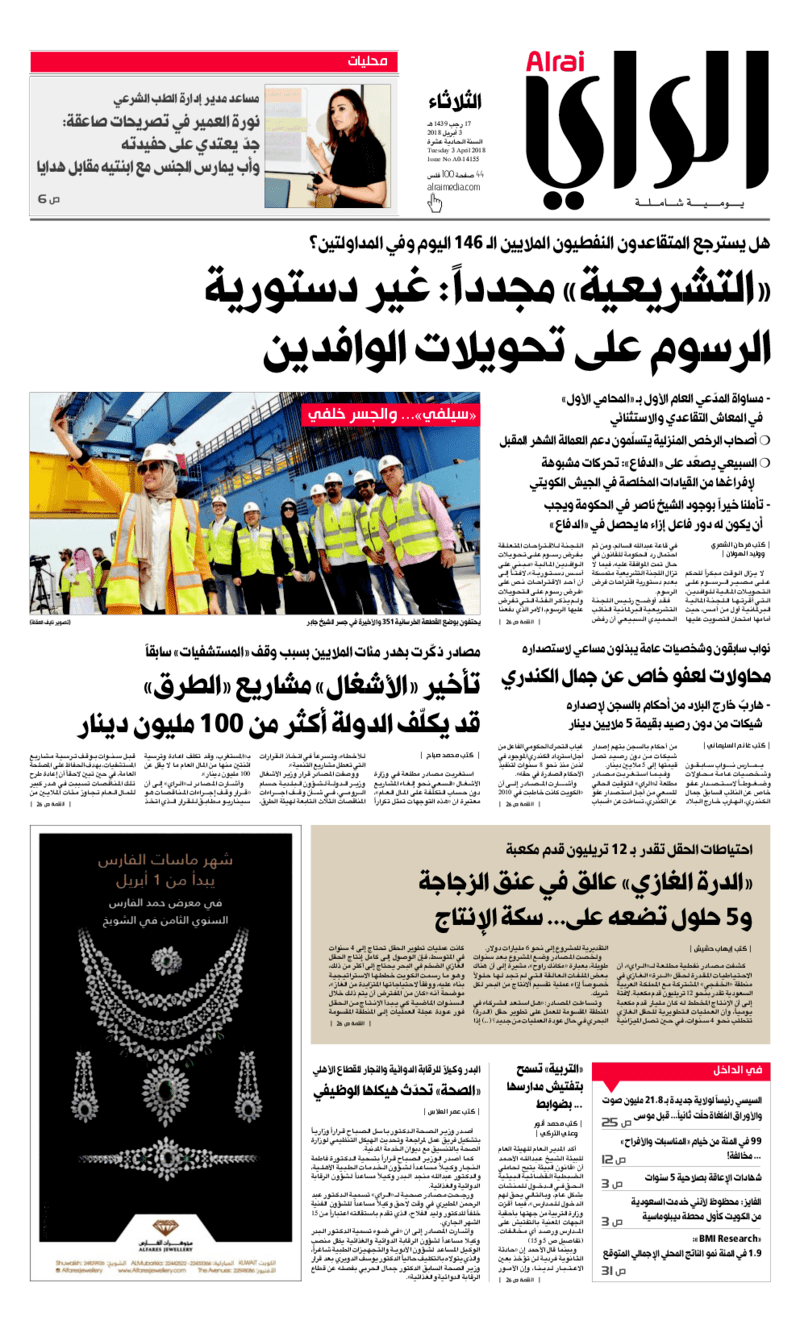 آخر الأخبار جرائم وقضايا “الجمارك” تضبط 29 ألف علبة مشروبات كحولية قادمة من دولة آسيوية في ميناء الشويخ 9 يونيو، 2024 محليات ممثلة عن دولة الكويت الطبيبة الكويتية أسماء الكندري تشارك في المؤتمر العالمي للمناظير في إيطاليا 8 يونيو، 2024 محليات “الصحة”: اكتمال وصول فريق الخدمات الطبية ببعثة الحج الكويتية لمكة المكرمة 8 يونيو، 2024 محليات “الصحة” تحدد 8 مراكز للصحة المدرسية لاستقبال الطلبة المبتعثين 8 يونيو، 2024 عربي وعالمي “الصحة العالمية”: تسجيل أول وفاة لشخص مصاب بـ«أنفلونزا الطيور» 7 يونيو، 2024 محليات عناوين الصحف الكويتية ليوم الثلاثاء 03 أبريل 2018 محرر المحليات3 أبريل، 2018أضف تعليق1 دقائق جريدة الجريدة جريدة الأنباء جريدة القبس جريدة السياسة جريدة الراي جريدة الوسط جريدة الشاهد الوسومTop عناوين الصحف المحلية من الممكن أن يعجبك جرائم وقضايا “الجمارك” تضبط 29 ألف علبة مشروبات كحولية قادمة من دولة آسيوية في ميناء الشويخ محليات ممثلة عن دولة الكويت الطبيبة الكويتية أسماء الكندري تشارك في المؤتمر العالمي للمناظير في إيطاليا محليات “الصحة”: اكتمال وصول فريق الخدمات الطبية ببعثة الحج الكويتية لمكة المكرمة محليات “الصحة” تحدد 8 مراكز للصحة المدرسية لاستقبال الطلبة المبتعثين عربي وعالمي “الصحة العالمية”: تسجيل أول وفاة لشخص مصاب بـ«أنفلونزا الطيور» تكنولوجيا رش السحب بملح البحر.. تجربة “ثورية” لتبريد كوكب الأرض أضف تعليق أضغط هنا لإضافة تعليق إلغاء الردالتعليقالاسم البريد الإلكتروني الموقع الإلكتروني Δ هذا الموقع يستخدم خدمة أكيسميت للتقليل من البريد المزعجة. اعرف المزيد عن كيفية التعامل مع بيانات التعليقات الخاصة بك processed.