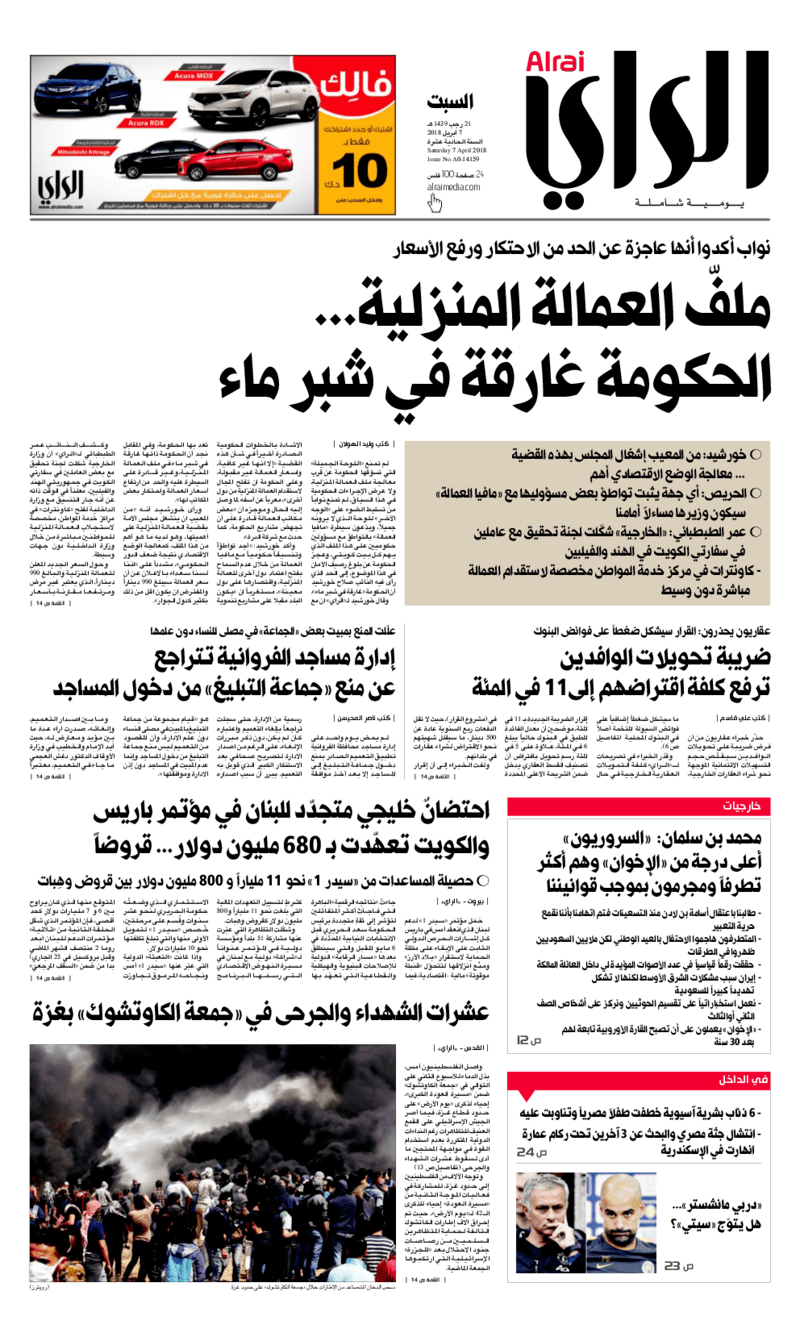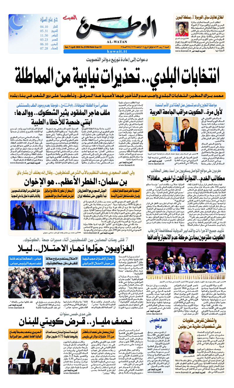آخر الأخبار جرائم وقضايا “الجمارك” تضبط 29 ألف علبة مشروبات كحولية قادمة من دولة آسيوية في ميناء الشويخ 9 يونيو، 2024 محليات ممثلة عن دولة الكويت الطبيبة الكويتية أسماء الكندري تشارك في المؤتمر العالمي للمناظير في إيطاليا 8 يونيو، 2024 محليات “الصحة”: اكتمال وصول فريق الخدمات الطبية ببعثة الحج الكويتية لمكة المكرمة 8 يونيو، 2024 محليات “الصحة” تحدد 8 مراكز للصحة المدرسية لاستقبال الطلبة المبتعثين 8 يونيو، 2024 عربي وعالمي “الصحة العالمية”: تسجيل أول وفاة لشخص مصاب بـ«أنفلونزا الطيور» 7 يونيو، 2024 محليات عناوين الصحف الكويتية ليوم السبت 07 أبريل 2018 محرر المحليات7 أبريل، 2018أضف تعليق1 دقائق جريدة الجريدة جريدة الأنباء جريدة القبس جريدة الوطن جريدة الراي جريدة الوسط الوسومTop عناوين الصحف المحلية من الممكن أن يعجبك جرائم وقضايا “الجمارك” تضبط 29 ألف علبة مشروبات كحولية قادمة من دولة آسيوية في ميناء الشويخ محليات ممثلة عن دولة الكويت الطبيبة الكويتية أسماء الكندري تشارك في المؤتمر العالمي للمناظير في إيطاليا محليات “الصحة”: اكتمال وصول فريق الخدمات الطبية ببعثة الحج الكويتية لمكة المكرمة محليات “الصحة” تحدد 8 مراكز للصحة المدرسية لاستقبال الطلبة المبتعثين عربي وعالمي “الصحة العالمية”: تسجيل أول وفاة لشخص مصاب بـ«أنفلونزا الطيور» تكنولوجيا رش السحب بملح البحر.. تجربة “ثورية” لتبريد كوكب الأرض أضف تعليق أضغط هنا لإضافة تعليق إلغاء الردالتعليقالاسم البريد الإلكتروني الموقع الإلكتروني Δ هذا الموقع يستخدم خدمة أكيسميت للتقليل من البريد المزعجة. اعرف المزيد عن كيفية التعامل مع بيانات التعليقات الخاصة بك processed.