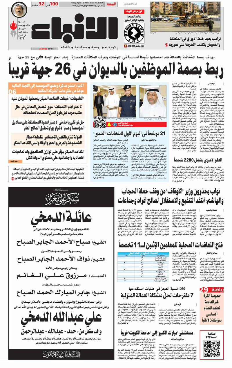 آخر الأخبار جرائم وقضايا “الجمارك” تضبط 29 ألف علبة مشروبات كحولية قادمة من دولة آسيوية في ميناء الشويخ 9 يونيو، 2024 محليات ممثلة عن دولة الكويت الطبيبة الكويتية أسماء الكندري تشارك في المؤتمر العالمي للمناظير في إيطاليا 8 يونيو، 2024 محليات “الصحة”: اكتمال وصول فريق الخدمات الطبية ببعثة الحج الكويتية لمكة المكرمة 8 يونيو، 2024 محليات “الصحة” تحدد 8 مراكز للصحة المدرسية لاستقبال الطلبة المبتعثين 8 يونيو، 2024 عربي وعالمي “الصحة العالمية”: تسجيل أول وفاة لشخص مصاب بـ«أنفلونزا الطيور» 7 يونيو، 2024 محليات عناوين الصحف الكويتية ليوم الجمعة 13 أبريل 2018 محرر المحليات13 أبريل، 2018أضف تعليق1 دقائق جريدة الجريدة جريدة الأنباء جريدة القبس جريدة السياسة جريدة الراي جريدة النهار الوسومTop عناوين الصحف المحلية من الممكن أن يعجبك جرائم وقضايا “الجمارك” تضبط 29 ألف علبة مشروبات كحولية قادمة من دولة آسيوية في ميناء الشويخ محليات ممثلة عن دولة الكويت الطبيبة الكويتية أسماء الكندري تشارك في المؤتمر العالمي للمناظير في إيطاليا محليات “الصحة”: اكتمال وصول فريق الخدمات الطبية ببعثة الحج الكويتية لمكة المكرمة محليات “الصحة” تحدد 8 مراكز للصحة المدرسية لاستقبال الطلبة المبتعثين عربي وعالمي “الصحة العالمية”: تسجيل أول وفاة لشخص مصاب بـ«أنفلونزا الطيور» تكنولوجيا رش السحب بملح البحر.. تجربة “ثورية” لتبريد كوكب الأرض أضف تعليق أضغط هنا لإضافة تعليق إلغاء الردالتعليقالاسم البريد الإلكتروني الموقع الإلكتروني Δ هذا الموقع يستخدم خدمة أكيسميت للتقليل من البريد المزعجة. اعرف المزيد عن كيفية التعامل مع بيانات التعليقات الخاصة بك processed.