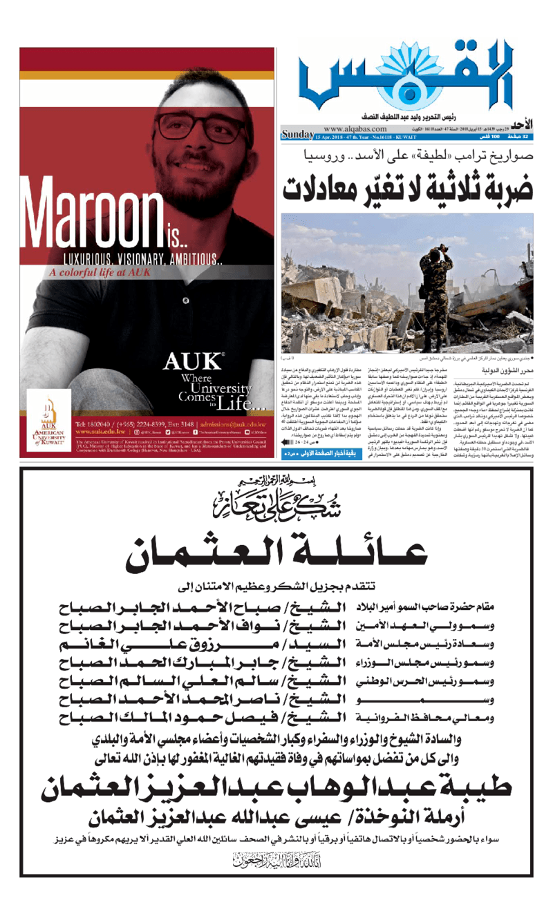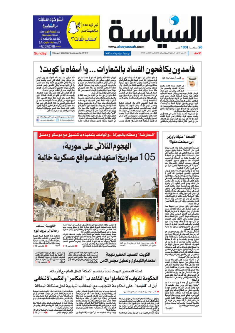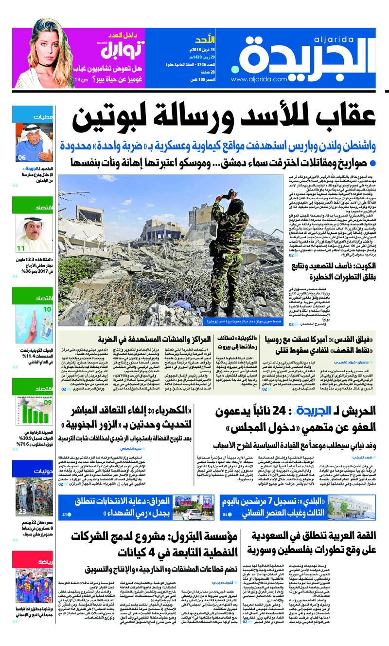 آخر الأخبار جرائم وقضايا “الجمارك” تضبط 29 ألف علبة مشروبات كحولية قادمة من دولة آسيوية في ميناء الشويخ 9 يونيو، 2024 محليات ممثلة عن دولة الكويت الطبيبة الكويتية أسماء الكندري تشارك في المؤتمر العالمي للمناظير في إيطاليا 8 يونيو، 2024 محليات “الصحة”: اكتمال وصول فريق الخدمات الطبية ببعثة الحج الكويتية لمكة المكرمة 8 يونيو، 2024 محليات “الصحة” تحدد 8 مراكز للصحة المدرسية لاستقبال الطلبة المبتعثين 8 يونيو، 2024 عربي وعالمي “الصحة العالمية”: تسجيل أول وفاة لشخص مصاب بـ«أنفلونزا الطيور» 7 يونيو، 2024 محليات عناوين الصحف الكويتية ليوم الأحد 15 أبريل 2018 محرر المحليات15 أبريل، 2018أضف تعليق1 دقائق جريدة الجريدة جريدة الأنباء جريدة القبس جريدة السياسة جريدة الراي جريدة الوسط الوسومTop عناوين الصحف المحلية من الممكن أن يعجبك جرائم وقضايا “الجمارك” تضبط 29 ألف علبة مشروبات كحولية قادمة من دولة آسيوية في ميناء الشويخ محليات ممثلة عن دولة الكويت الطبيبة الكويتية أسماء الكندري تشارك في المؤتمر العالمي للمناظير في إيطاليا محليات “الصحة”: اكتمال وصول فريق الخدمات الطبية ببعثة الحج الكويتية لمكة المكرمة محليات “الصحة” تحدد 8 مراكز للصحة المدرسية لاستقبال الطلبة المبتعثين عربي وعالمي “الصحة العالمية”: تسجيل أول وفاة لشخص مصاب بـ«أنفلونزا الطيور» تكنولوجيا رش السحب بملح البحر.. تجربة “ثورية” لتبريد كوكب الأرض أضف تعليق أضغط هنا لإضافة تعليق إلغاء الردالتعليقالاسم البريد الإلكتروني الموقع الإلكتروني Δ هذا الموقع يستخدم خدمة أكيسميت للتقليل من البريد المزعجة. اعرف المزيد عن كيفية التعامل مع بيانات التعليقات الخاصة بك processed.