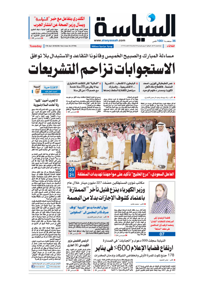 آخر الأخبار جرائم وقضايا “الجمارك” تضبط 29 ألف علبة مشروبات كحولية قادمة من دولة آسيوية في ميناء الشويخ 9 يونيو، 2024 محليات ممثلة عن دولة الكويت الطبيبة الكويتية أسماء الكندري تشارك في المؤتمر العالمي للمناظير في إيطاليا 8 يونيو، 2024 محليات “الصحة”: اكتمال وصول فريق الخدمات الطبية ببعثة الحج الكويتية لمكة المكرمة 8 يونيو، 2024 محليات “الصحة” تحدد 8 مراكز للصحة المدرسية لاستقبال الطلبة المبتعثين 8 يونيو، 2024 عربي وعالمي “الصحة العالمية”: تسجيل أول وفاة لشخص مصاب بـ«أنفلونزا الطيور» 7 يونيو، 2024 محليات عناوين الصحف الكويتية ليوم الثلاثاء 17 أبريل 2018 محرر المحليات17 أبريل، 2018أضف تعليق1 دقائق جريدة الجريدة جريدة الأنباء جريدة القبس جريدة السياسة جريدة الوطن جريدة الراي جريدة الوسط جريدة النهار جريدة الشاهد الوسومTop عناوين الصحف المحلية من الممكن أن يعجبك جرائم وقضايا “الجمارك” تضبط 29 ألف علبة مشروبات كحولية قادمة من دولة آسيوية في ميناء الشويخ محليات ممثلة عن دولة الكويت الطبيبة الكويتية أسماء الكندري تشارك في المؤتمر العالمي للمناظير في إيطاليا محليات “الصحة”: اكتمال وصول فريق الخدمات الطبية ببعثة الحج الكويتية لمكة المكرمة محليات “الصحة” تحدد 8 مراكز للصحة المدرسية لاستقبال الطلبة المبتعثين عربي وعالمي “الصحة العالمية”: تسجيل أول وفاة لشخص مصاب بـ«أنفلونزا الطيور» تكنولوجيا رش السحب بملح البحر.. تجربة “ثورية” لتبريد كوكب الأرض أضف تعليق أضغط هنا لإضافة تعليق إلغاء الردالتعليقالاسم البريد الإلكتروني الموقع الإلكتروني Δ هذا الموقع يستخدم خدمة أكيسميت للتقليل من البريد المزعجة. اعرف المزيد عن كيفية التعامل مع بيانات التعليقات الخاصة بك processed.