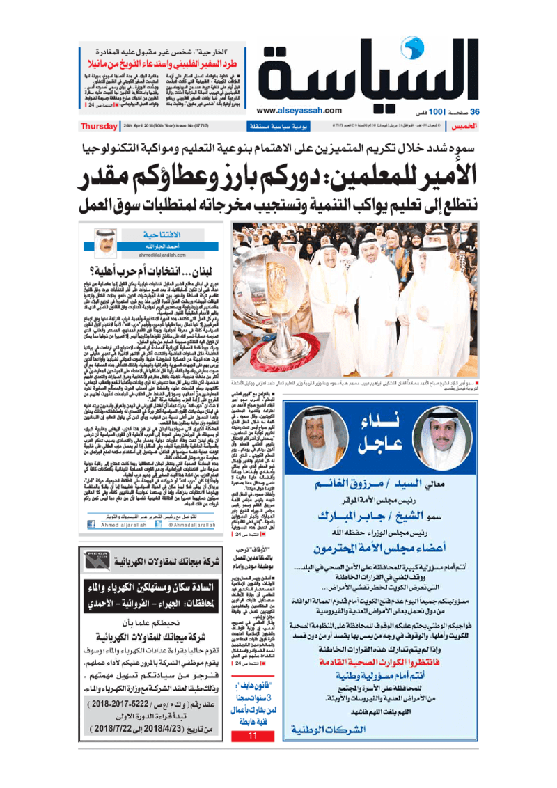 آخر الأخبار جرائم وقضايا “الجمارك” تضبط 29 ألف علبة مشروبات كحولية قادمة من دولة آسيوية في ميناء الشويخ 9 يونيو، 2024 محليات ممثلة عن دولة الكويت الطبيبة الكويتية أسماء الكندري تشارك في المؤتمر العالمي للمناظير في إيطاليا 8 يونيو، 2024 محليات “الصحة”: اكتمال وصول فريق الخدمات الطبية ببعثة الحج الكويتية لمكة المكرمة 8 يونيو، 2024 محليات “الصحة” تحدد 8 مراكز للصحة المدرسية لاستقبال الطلبة المبتعثين 8 يونيو، 2024 عربي وعالمي “الصحة العالمية”: تسجيل أول وفاة لشخص مصاب بـ«أنفلونزا الطيور» 7 يونيو، 2024 محليات عناوين الصحف الكويتية ليوم الخميس 26 أبريل 2018 محرر المحليات26 أبريل، 2018أضف تعليق1 دقائق جريدة الأنباء جريدة القبس جريدة السياسة جريدة الراي جريدة الوسط جريدة النهار جريدة الشاهد الوسومTop عناوين الصحف المحلية من الممكن أن يعجبك جرائم وقضايا “الجمارك” تضبط 29 ألف علبة مشروبات كحولية قادمة من دولة آسيوية في ميناء الشويخ محليات ممثلة عن دولة الكويت الطبيبة الكويتية أسماء الكندري تشارك في المؤتمر العالمي للمناظير في إيطاليا محليات “الصحة”: اكتمال وصول فريق الخدمات الطبية ببعثة الحج الكويتية لمكة المكرمة محليات “الصحة” تحدد 8 مراكز للصحة المدرسية لاستقبال الطلبة المبتعثين عربي وعالمي “الصحة العالمية”: تسجيل أول وفاة لشخص مصاب بـ«أنفلونزا الطيور» تكنولوجيا رش السحب بملح البحر.. تجربة “ثورية” لتبريد كوكب الأرض أضف تعليق أضغط هنا لإضافة تعليق إلغاء الردالتعليقالاسم البريد الإلكتروني الموقع الإلكتروني Δ هذا الموقع يستخدم خدمة أكيسميت للتقليل من البريد المزعجة. اعرف المزيد عن كيفية التعامل مع بيانات التعليقات الخاصة بك processed.