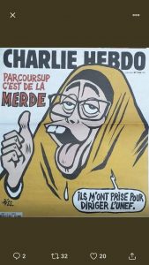 انضمت صحيفة “شارلي إيبدو” إلى قائمة منتقدي الطالبة الفرنسية ورئيسة الاتحاد الوطني لطلبة فرنسا في “جامعة السوربون”، مريم بوجيتو، التي واجهت اتهامات وزراء فرنسيين بأنها ترتدي الحجاب كوسيلة لتحقيق مكاسب سياسية.