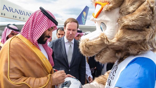 ووَقَّع بن سلمان على الكرة التذكارية لكأس العالم 2018 خلال وصوله إلى موسكو.