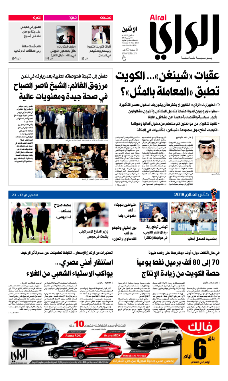 آخر الأخبار جرائم وقضايا “الجمارك” تضبط 29 ألف علبة مشروبات كحولية قادمة من دولة آسيوية في ميناء الشويخ 9 يونيو، 2024 محليات ممثلة عن دولة الكويت الطبيبة الكويتية أسماء الكندري تشارك في المؤتمر العالمي للمناظير في إيطاليا 8 يونيو، 2024 محليات “الصحة”: اكتمال وصول فريق الخدمات الطبية ببعثة الحج الكويتية لمكة المكرمة 8 يونيو، 2024 محليات “الصحة” تحدد 8 مراكز للصحة المدرسية لاستقبال الطلبة المبتعثين 8 يونيو، 2024 عربي وعالمي “الصحة العالمية”: تسجيل أول وفاة لشخص مصاب بـ«أنفلونزا الطيور» 7 يونيو، 2024 محليات عناوين الصحف الكويتية ليوم الاثنين 18 يونيو 2018 محرر المحليات18 يونيو، 2018أضف تعليق1 دقائق جريدة الجريدة جريدة الأنباء جريدة القبس جريدة الوطن جريدة الراي جريدة الوسط الوسومTop عناوين الصحف المحلية من الممكن أن يعجبك جرائم وقضايا “الجمارك” تضبط 29 ألف علبة مشروبات كحولية قادمة من دولة آسيوية في ميناء الشويخ محليات ممثلة عن دولة الكويت الطبيبة الكويتية أسماء الكندري تشارك في المؤتمر العالمي للمناظير في إيطاليا محليات “الصحة”: اكتمال وصول فريق الخدمات الطبية ببعثة الحج الكويتية لمكة المكرمة محليات “الصحة” تحدد 8 مراكز للصحة المدرسية لاستقبال الطلبة المبتعثين عربي وعالمي “الصحة العالمية”: تسجيل أول وفاة لشخص مصاب بـ«أنفلونزا الطيور» تكنولوجيا رش السحب بملح البحر.. تجربة “ثورية” لتبريد كوكب الأرض أضف تعليق أضغط هنا لإضافة تعليق إلغاء الردالتعليقالاسم البريد الإلكتروني الموقع الإلكتروني Δ هذا الموقع يستخدم خدمة أكيسميت للتقليل من البريد المزعجة. اعرف المزيد عن كيفية التعامل مع بيانات التعليقات الخاصة بك processed.