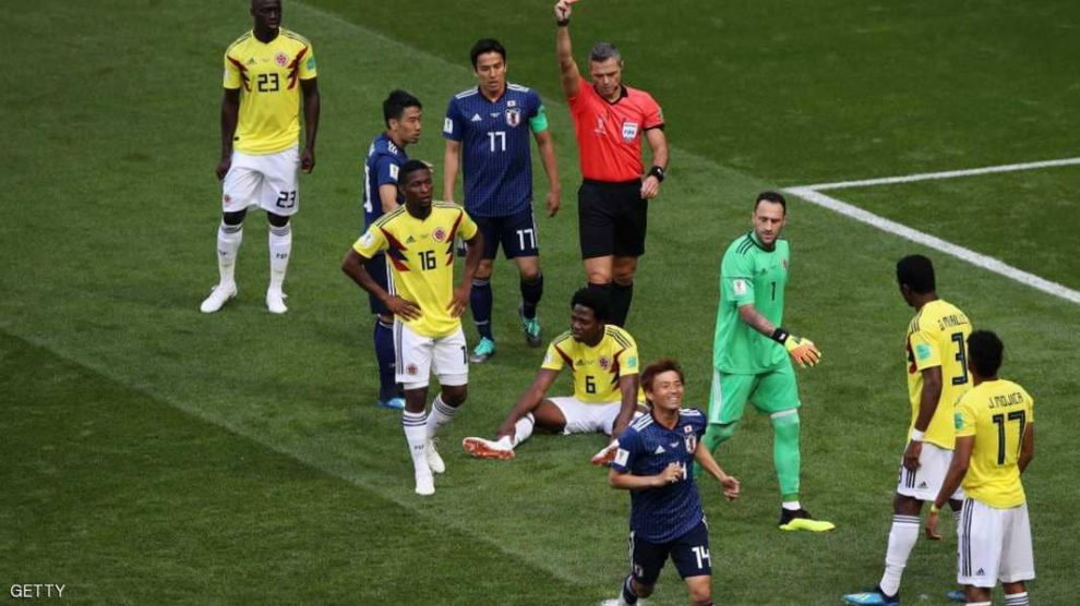تلقى مدافع المنتخب الكولومبي، كارلوس سانشيز، البطاقة الحمراء الأولى في مونديال روسيا 2018، عندما طرد في الدقيقة الثالثة من المباراة ضد اليابان في سارانسك في الجولة الأولى من منافسات المجموعة الثامنة.