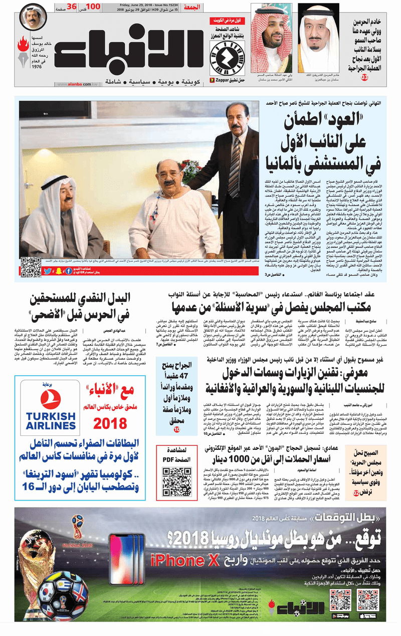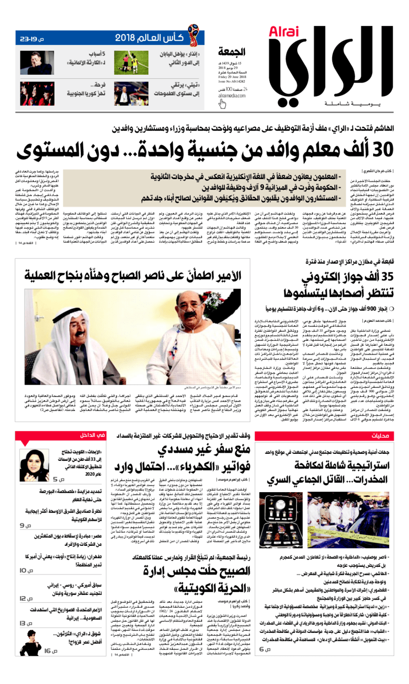 آخر الأخبار جرائم وقضايا “الجمارك” تضبط 29 ألف علبة مشروبات كحولية قادمة من دولة آسيوية في ميناء الشويخ 9 يونيو، 2024 محليات ممثلة عن دولة الكويت الطبيبة الكويتية أسماء الكندري تشارك في المؤتمر العالمي للمناظير في إيطاليا 8 يونيو، 2024 محليات “الصحة”: اكتمال وصول فريق الخدمات الطبية ببعثة الحج الكويتية لمكة المكرمة 8 يونيو، 2024 محليات “الصحة” تحدد 8 مراكز للصحة المدرسية لاستقبال الطلبة المبتعثين 8 يونيو، 2024 عربي وعالمي “الصحة العالمية”: تسجيل أول وفاة لشخص مصاب بـ«أنفلونزا الطيور» 7 يونيو، 2024 محليات عناوين الصحف الكويتية ليوم الجمعة 29 يونيو 2018 محرر المحليات29 يونيو، 2018أضف تعليق1 دقائق جريدة الجريدة جريدة الأنباء جريدة القبس جريدة السياسة جريدة الوطن جريدة الراي جريدة النهار الوسومTop عناوين الصحف المحلية من الممكن أن يعجبك جرائم وقضايا “الجمارك” تضبط 29 ألف علبة مشروبات كحولية قادمة من دولة آسيوية في ميناء الشويخ محليات ممثلة عن دولة الكويت الطبيبة الكويتية أسماء الكندري تشارك في المؤتمر العالمي للمناظير في إيطاليا محليات “الصحة”: اكتمال وصول فريق الخدمات الطبية ببعثة الحج الكويتية لمكة المكرمة محليات “الصحة” تحدد 8 مراكز للصحة المدرسية لاستقبال الطلبة المبتعثين عربي وعالمي “الصحة العالمية”: تسجيل أول وفاة لشخص مصاب بـ«أنفلونزا الطيور» تكنولوجيا رش السحب بملح البحر.. تجربة “ثورية” لتبريد كوكب الأرض أضف تعليق أضغط هنا لإضافة تعليق إلغاء الردالتعليقالاسم البريد الإلكتروني الموقع الإلكتروني Δ هذا الموقع يستخدم خدمة أكيسميت للتقليل من البريد المزعجة. اعرف المزيد عن كيفية التعامل مع بيانات التعليقات الخاصة بك processed.