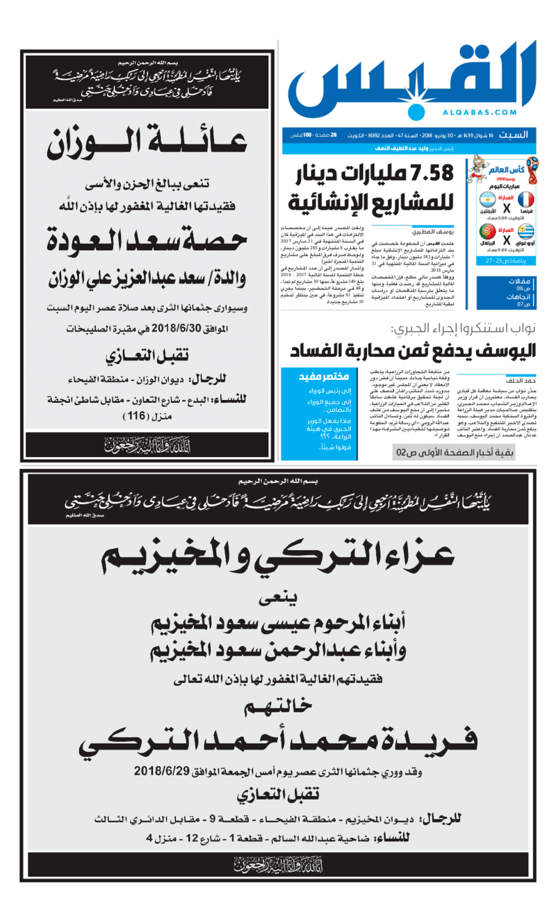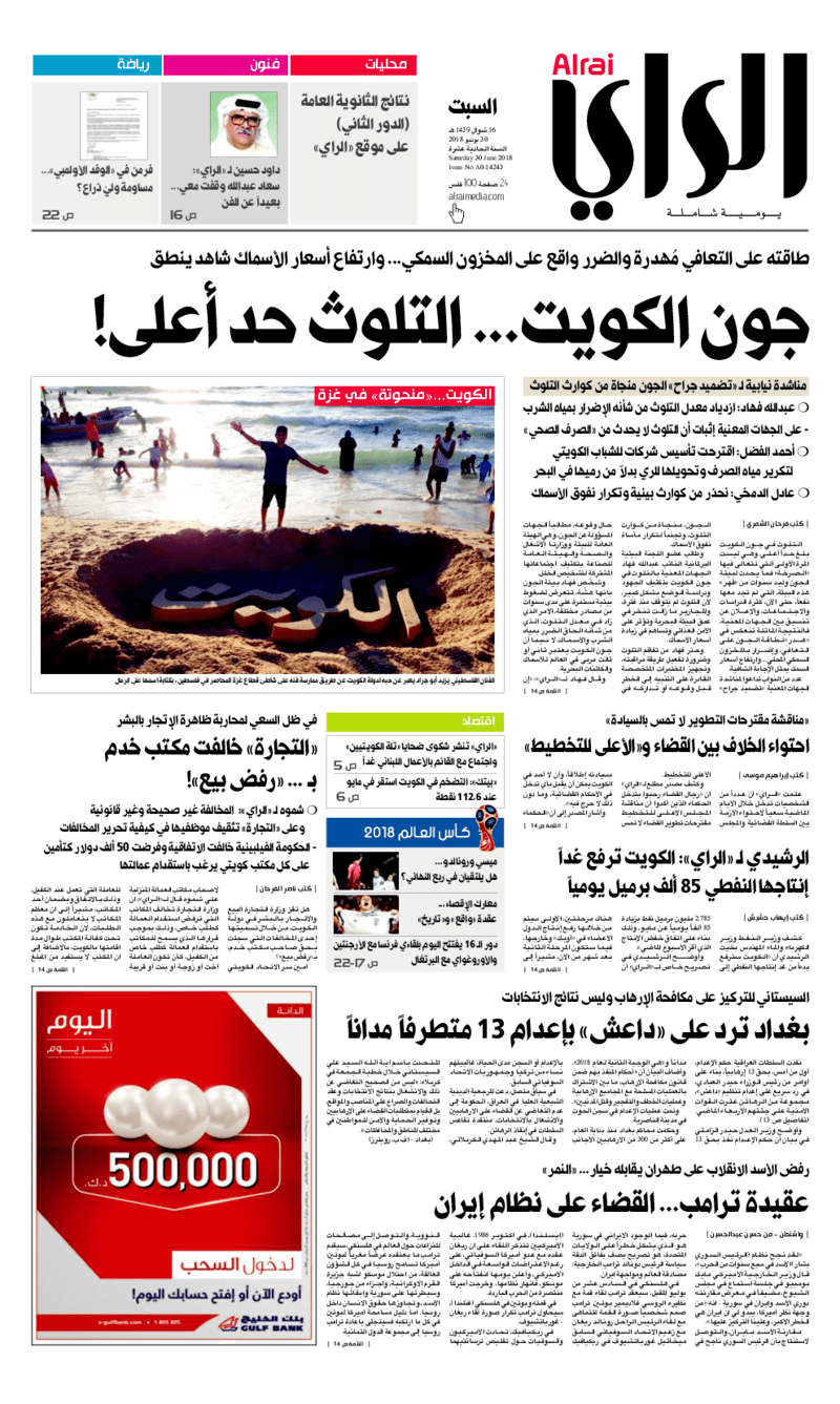 آخر الأخبار جرائم وقضايا “الجمارك” تضبط 29 ألف علبة مشروبات كحولية قادمة من دولة آسيوية في ميناء الشويخ 9 يونيو، 2024 محليات ممثلة عن دولة الكويت الطبيبة الكويتية أسماء الكندري تشارك في المؤتمر العالمي للمناظير في إيطاليا 8 يونيو، 2024 محليات “الصحة”: اكتمال وصول فريق الخدمات الطبية ببعثة الحج الكويتية لمكة المكرمة 8 يونيو، 2024 محليات “الصحة” تحدد 8 مراكز للصحة المدرسية لاستقبال الطلبة المبتعثين 8 يونيو، 2024 عربي وعالمي “الصحة العالمية”: تسجيل أول وفاة لشخص مصاب بـ«أنفلونزا الطيور» 7 يونيو، 2024 محليات عناوين الصحف الكويتية ليوم السبت 30 يونيو 2018 محرر المحليات30 يونيو، 2018أضف تعليق1 دقائق جريدة الجريدة جريدة الأنباء جريدة القبس جريدة الوطن جريدة الراي جريدة الوسط الوسومTop عناوين الصحف المحلية من الممكن أن يعجبك جرائم وقضايا “الجمارك” تضبط 29 ألف علبة مشروبات كحولية قادمة من دولة آسيوية في ميناء الشويخ محليات ممثلة عن دولة الكويت الطبيبة الكويتية أسماء الكندري تشارك في المؤتمر العالمي للمناظير في إيطاليا محليات “الصحة”: اكتمال وصول فريق الخدمات الطبية ببعثة الحج الكويتية لمكة المكرمة محليات “الصحة” تحدد 8 مراكز للصحة المدرسية لاستقبال الطلبة المبتعثين عربي وعالمي “الصحة العالمية”: تسجيل أول وفاة لشخص مصاب بـ«أنفلونزا الطيور» تكنولوجيا رش السحب بملح البحر.. تجربة “ثورية” لتبريد كوكب الأرض أضف تعليق أضغط هنا لإضافة تعليق إلغاء الردالتعليقالاسم البريد الإلكتروني الموقع الإلكتروني Δ هذا الموقع يستخدم خدمة أكيسميت للتقليل من البريد المزعجة. اعرف المزيد عن كيفية التعامل مع بيانات التعليقات الخاصة بك processed.