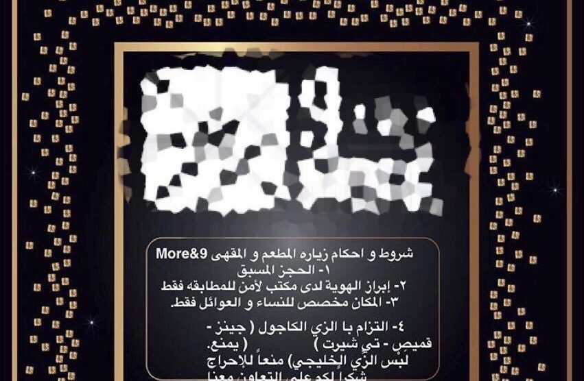 أغلقت اليوم الخميس لجنة مشكلة من إمارة المنطقة الشرقية في السعودية والشرطة أحد المطاعم بالخبر، بعد نشره لإعلان في أحد مواقع التواصل الاجتماعي برفضه دخول زبائن المطعم بالزي الوطني.
