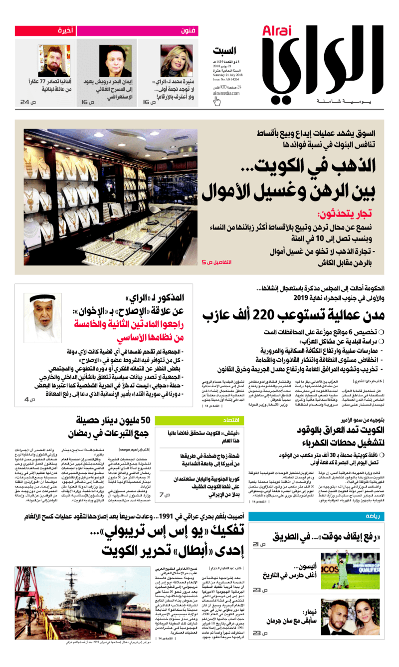 آخر الأخبار جرائم وقضايا “الجمارك” تضبط 29 ألف علبة مشروبات كحولية قادمة من دولة آسيوية في ميناء الشويخ 9 يونيو، 2024 محليات ممثلة عن دولة الكويت الطبيبة الكويتية أسماء الكندري تشارك في المؤتمر العالمي للمناظير في إيطاليا 8 يونيو، 2024 محليات “الصحة”: اكتمال وصول فريق الخدمات الطبية ببعثة الحج الكويتية لمكة المكرمة 8 يونيو، 2024 محليات “الصحة” تحدد 8 مراكز للصحة المدرسية لاستقبال الطلبة المبتعثين 8 يونيو، 2024 عربي وعالمي “الصحة العالمية”: تسجيل أول وفاة لشخص مصاب بـ«أنفلونزا الطيور» 7 يونيو، 2024 محليات عناوين الصحف الكويتية ليوم السبت 21 يوليو 2018 محرر المحليات21 يوليو، 2018أضف تعليق1 دقائق جريدة الجريدة جريدة الأنباء جريدة القبس جريدة الوطن جريدة الراي جريدة الوسط الوسومTop عناوين الصحف المحلية من الممكن أن يعجبك جرائم وقضايا “الجمارك” تضبط 29 ألف علبة مشروبات كحولية قادمة من دولة آسيوية في ميناء الشويخ محليات ممثلة عن دولة الكويت الطبيبة الكويتية أسماء الكندري تشارك في المؤتمر العالمي للمناظير في إيطاليا محليات “الصحة”: اكتمال وصول فريق الخدمات الطبية ببعثة الحج الكويتية لمكة المكرمة محليات “الصحة” تحدد 8 مراكز للصحة المدرسية لاستقبال الطلبة المبتعثين عربي وعالمي “الصحة العالمية”: تسجيل أول وفاة لشخص مصاب بـ«أنفلونزا الطيور» تكنولوجيا رش السحب بملح البحر.. تجربة “ثورية” لتبريد كوكب الأرض أضف تعليق أضغط هنا لإضافة تعليق إلغاء الردالتعليقالاسم البريد الإلكتروني الموقع الإلكتروني Δ هذا الموقع يستخدم خدمة أكيسميت للتقليل من البريد المزعجة. اعرف المزيد عن كيفية التعامل مع بيانات التعليقات الخاصة بك processed.