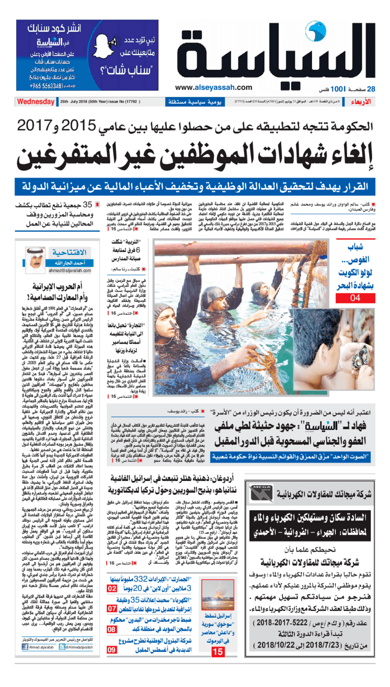 آخر الأخبار جرائم وقضايا “الجمارك” تضبط 29 ألف علبة مشروبات كحولية قادمة من دولة آسيوية في ميناء الشويخ 9 يونيو، 2024 محليات ممثلة عن دولة الكويت الطبيبة الكويتية أسماء الكندري تشارك في المؤتمر العالمي للمناظير في إيطاليا 8 يونيو، 2024 محليات “الصحة”: اكتمال وصول فريق الخدمات الطبية ببعثة الحج الكويتية لمكة المكرمة 8 يونيو، 2024 محليات “الصحة” تحدد 8 مراكز للصحة المدرسية لاستقبال الطلبة المبتعثين 8 يونيو، 2024 عربي وعالمي “الصحة العالمية”: تسجيل أول وفاة لشخص مصاب بـ«أنفلونزا الطيور» 7 يونيو، 2024 محليات عناوين الصحف الكويتية ليوم الأربعاء 25 يوليو 2018 محرر المحليات25 يوليو، 2018أضف تعليق1 دقائق جريدة الجريدة جريدة الأنباء جريدة القبس جريدة السياسة جريدة الراي جريدة الوسط جريدة النهار الوسومTop عناوين الصحف المحلية من الممكن أن يعجبك جرائم وقضايا “الجمارك” تضبط 29 ألف علبة مشروبات كحولية قادمة من دولة آسيوية في ميناء الشويخ محليات ممثلة عن دولة الكويت الطبيبة الكويتية أسماء الكندري تشارك في المؤتمر العالمي للمناظير في إيطاليا محليات “الصحة”: اكتمال وصول فريق الخدمات الطبية ببعثة الحج الكويتية لمكة المكرمة محليات “الصحة” تحدد 8 مراكز للصحة المدرسية لاستقبال الطلبة المبتعثين عربي وعالمي “الصحة العالمية”: تسجيل أول وفاة لشخص مصاب بـ«أنفلونزا الطيور» تكنولوجيا رش السحب بملح البحر.. تجربة “ثورية” لتبريد كوكب الأرض أضف تعليق أضغط هنا لإضافة تعليق إلغاء الردالتعليقالاسم البريد الإلكتروني الموقع الإلكتروني Δ هذا الموقع يستخدم خدمة أكيسميت للتقليل من البريد المزعجة. اعرف المزيد عن كيفية التعامل مع بيانات التعليقات الخاصة بك processed.