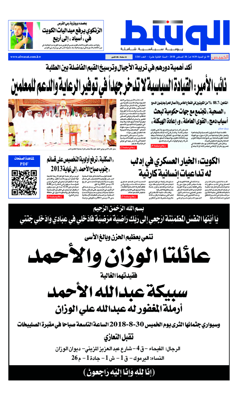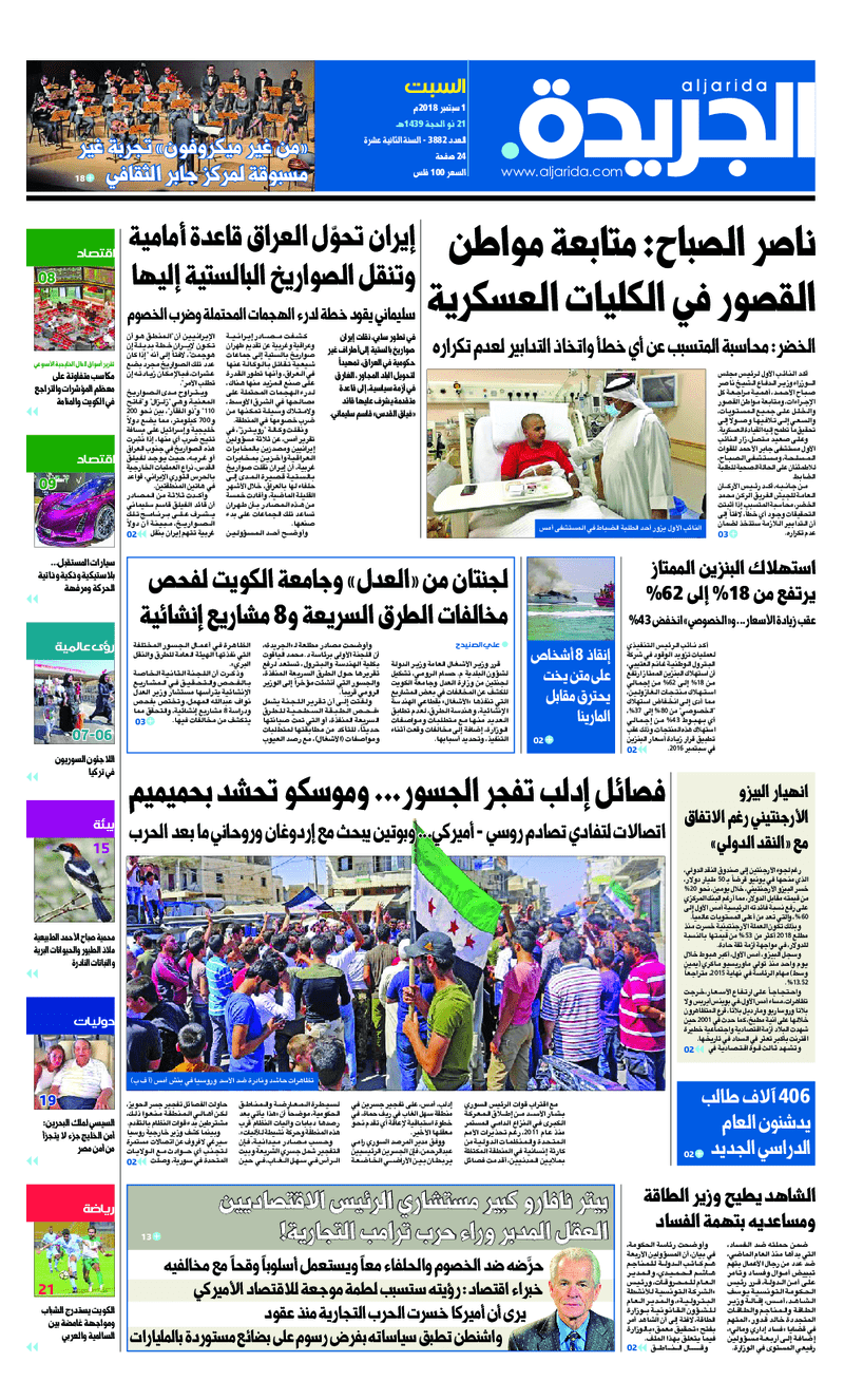 عناوين الصحف الكويتية ليوم السبت 01 سبتمبر 2018