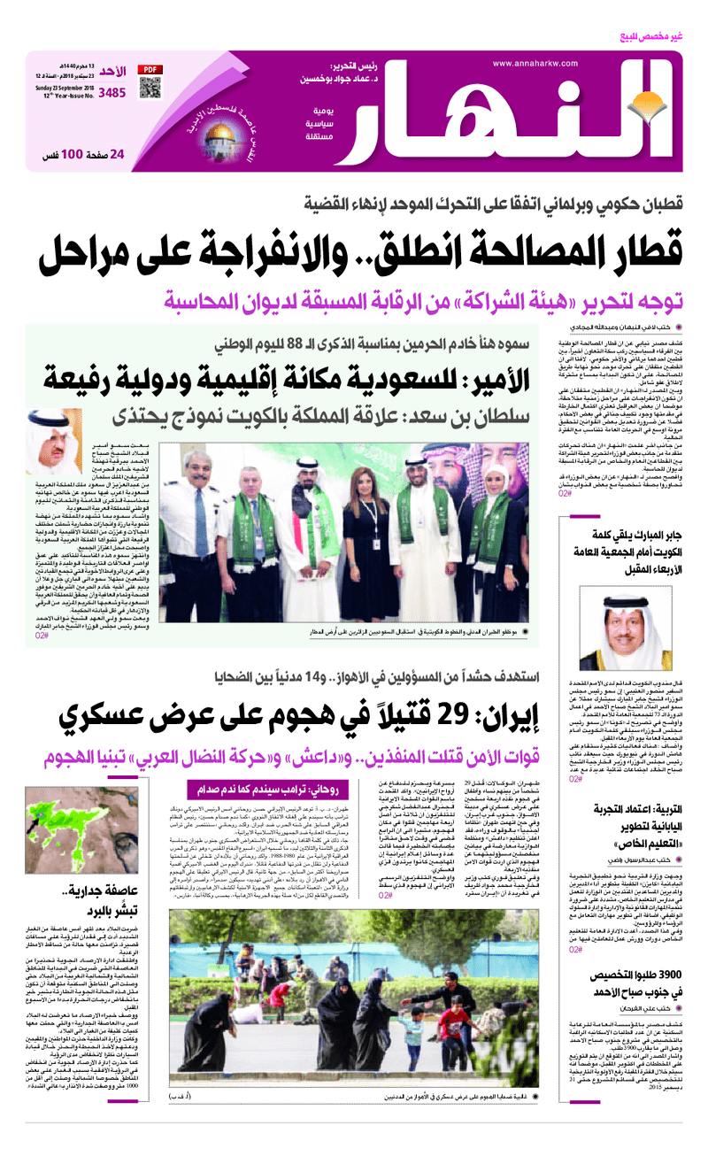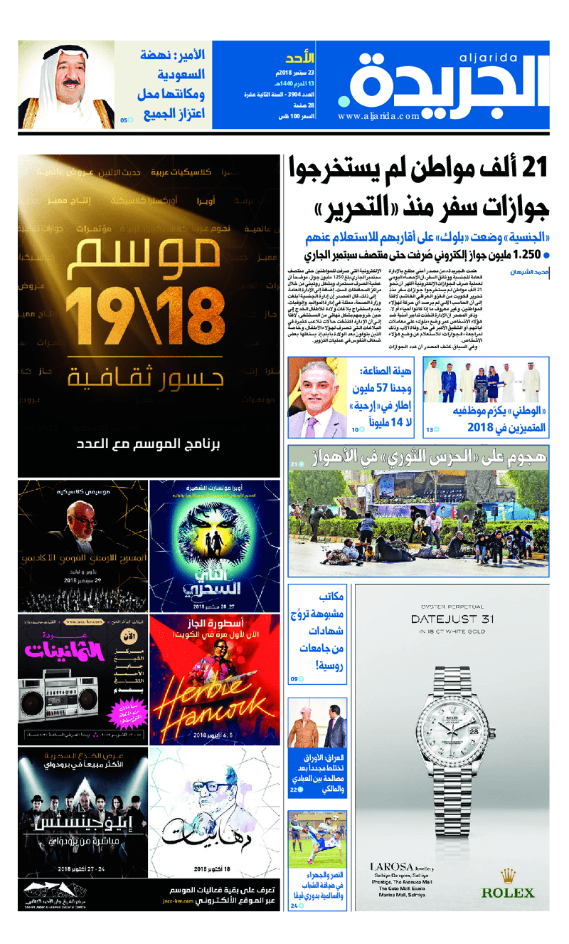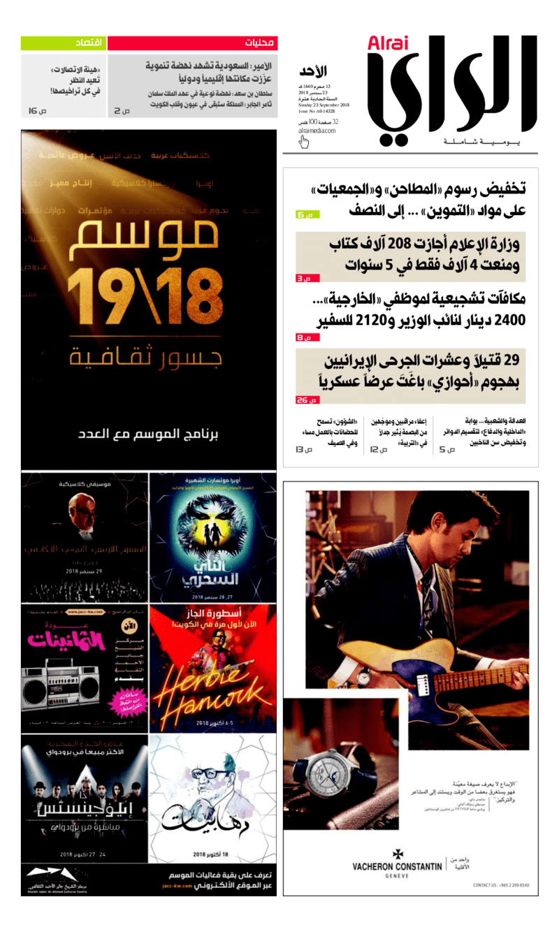 آخر الأخبار جرائم وقضايا “الجمارك” تضبط 29 ألف علبة مشروبات كحولية قادمة من دولة آسيوية في ميناء الشويخ 9 يونيو، 2024 محليات ممثلة عن دولة الكويت الطبيبة الكويتية أسماء الكندري تشارك في المؤتمر العالمي للمناظير في إيطاليا 8 يونيو، 2024 محليات “الصحة”: اكتمال وصول فريق الخدمات الطبية ببعثة الحج الكويتية لمكة المكرمة 8 يونيو، 2024 محليات “الصحة” تحدد 8 مراكز للصحة المدرسية لاستقبال الطلبة المبتعثين 8 يونيو، 2024 عربي وعالمي “الصحة العالمية”: تسجيل أول وفاة لشخص مصاب بـ«أنفلونزا الطيور» 7 يونيو، 2024 محليات عناوين الصحف الكويتية ليوم الأحد 23 سبتمبر 2018 محرر المحليات23 سبتمبر، 2018أضف تعليق1 دقائق جريدة الجريدة جريدة الأنباء جريدة القبس جريدة السياسة جريدة الوطن جريدة الراي جريدة الوسط جريدة النهار الوسومعناوين الصحف المحلية من الممكن أن يعجبك محليات ممثلة عن دولة الكويت الطبيبة الكويتية أسماء الكندري تشارك في المؤتمر العالمي للمناظير في إيطاليا محليات “الصحة”: اكتمال وصول فريق الخدمات الطبية ببعثة الحج الكويتية لمكة المكرمة محليات “الصحة” تحدد 8 مراكز للصحة المدرسية لاستقبال الطلبة المبتعثين محليات العجمي : السماح بالتخييم في “جال الزور” مدمر للبيئة محليات وزير الصحة : تشكيل لجنة فنية لإعداد دراسة إنشاء مركز متخصص في “التصلب العصبي المتعدد” محليات مجلس الوزراء يوافق على محضري “لجنة تحقيق الجنسية” أضف تعليق أضغط هنا لإضافة تعليق إلغاء الردالتعليقالاسم البريد الإلكتروني الموقع الإلكتروني Δ هذا الموقع يستخدم خدمة أكيسميت للتقليل من البريد المزعجة. اعرف المزيد عن كيفية التعامل مع بيانات التعليقات الخاصة بك processed.