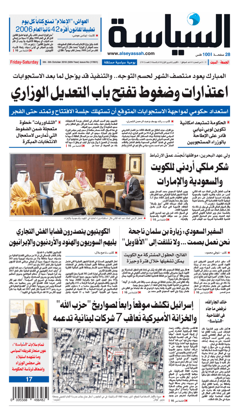 عناوين الصحف الكويتية ليوم الجمعة 05 أكتوبر 2018