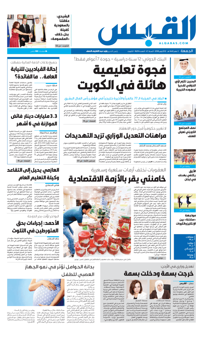 آخر الأخبار جرائم وقضايا “الجمارك” تضبط 29 ألف علبة مشروبات كحولية قادمة من دولة آسيوية في ميناء الشويخ 9 يونيو، 2024 محليات ممثلة عن دولة الكويت الطبيبة الكويتية أسماء الكندري تشارك في المؤتمر العالمي للمناظير في إيطاليا 8 يونيو، 2024 محليات “الصحة”: اكتمال وصول فريق الخدمات الطبية ببعثة الحج الكويتية لمكة المكرمة 8 يونيو، 2024 محليات “الصحة” تحدد 8 مراكز للصحة المدرسية لاستقبال الطلبة المبتعثين 8 يونيو، 2024 عربي وعالمي “الصحة العالمية”: تسجيل أول وفاة لشخص مصاب بـ«أنفلونزا الطيور» 7 يونيو، 2024 محليات عناوين الصحف الكويتية ليوم الجمعة 12 أكتوبر 2018 محرر المحليات12 أكتوبر، 2018أضف تعليق1 دقائق جريدة الجريدة جريدة الأنباء جريدة القبس جريدة السياسة جريدة الراي جريدة النهار الوسومTop عناوين الصحف المحلية من الممكن أن يعجبك جرائم وقضايا “الجمارك” تضبط 29 ألف علبة مشروبات كحولية قادمة من دولة آسيوية في ميناء الشويخ محليات ممثلة عن دولة الكويت الطبيبة الكويتية أسماء الكندري تشارك في المؤتمر العالمي للمناظير في إيطاليا محليات “الصحة”: اكتمال وصول فريق الخدمات الطبية ببعثة الحج الكويتية لمكة المكرمة محليات “الصحة” تحدد 8 مراكز للصحة المدرسية لاستقبال الطلبة المبتعثين عربي وعالمي “الصحة العالمية”: تسجيل أول وفاة لشخص مصاب بـ«أنفلونزا الطيور» تكنولوجيا رش السحب بملح البحر.. تجربة “ثورية” لتبريد كوكب الأرض أضف تعليق أضغط هنا لإضافة تعليق إلغاء الردالتعليقالاسم البريد الإلكتروني الموقع الإلكتروني Δ هذا الموقع يستخدم خدمة أكيسميت للتقليل من البريد المزعجة. اعرف المزيد عن كيفية التعامل مع بيانات التعليقات الخاصة بك processed.