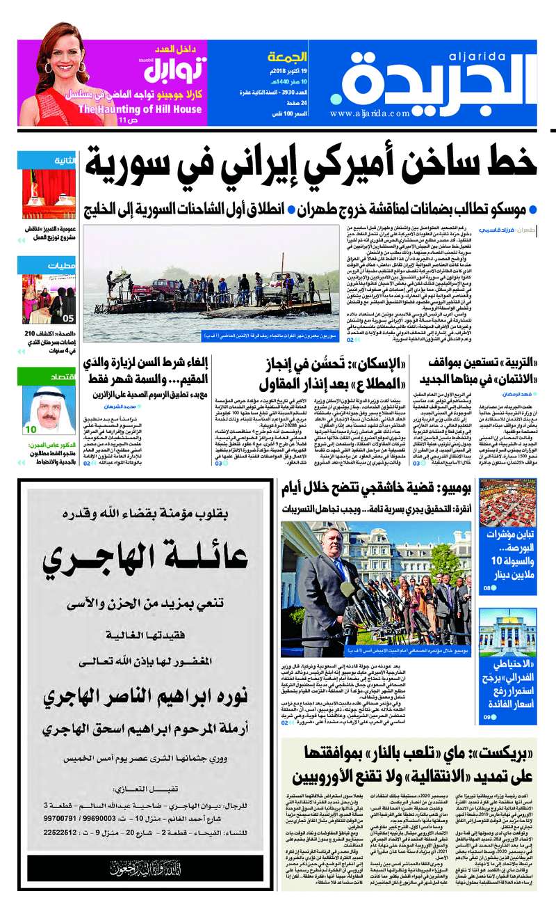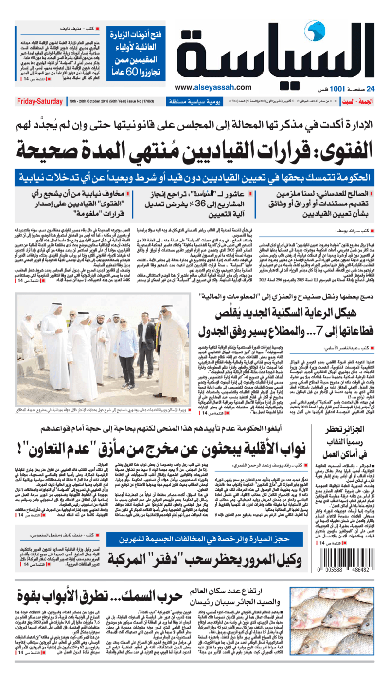 آخر الأخبار جرائم وقضايا “الجمارك” تضبط 29 ألف علبة مشروبات كحولية قادمة من دولة آسيوية في ميناء الشويخ 9 يونيو، 2024 محليات ممثلة عن دولة الكويت الطبيبة الكويتية أسماء الكندري تشارك في المؤتمر العالمي للمناظير في إيطاليا 8 يونيو، 2024 محليات “الصحة”: اكتمال وصول فريق الخدمات الطبية ببعثة الحج الكويتية لمكة المكرمة 8 يونيو، 2024 محليات “الصحة” تحدد 8 مراكز للصحة المدرسية لاستقبال الطلبة المبتعثين 8 يونيو، 2024 عربي وعالمي “الصحة العالمية”: تسجيل أول وفاة لشخص مصاب بـ«أنفلونزا الطيور» 7 يونيو، 2024 محليات عناوين الصحف الكويتية ليوم الجمعة 19 أكتوبر 2018 محرر المحليات19 أكتوبر، 2018أضف تعليق1 دقائق جريدة الجريدة جريدة الأنباء جريدة السياسة جريدة الوطن جريدة الراي جريدة النهار الوسومTop عناوين الصحف المحلية من الممكن أن يعجبك جرائم وقضايا “الجمارك” تضبط 29 ألف علبة مشروبات كحولية قادمة من دولة آسيوية في ميناء الشويخ محليات ممثلة عن دولة الكويت الطبيبة الكويتية أسماء الكندري تشارك في المؤتمر العالمي للمناظير في إيطاليا محليات “الصحة”: اكتمال وصول فريق الخدمات الطبية ببعثة الحج الكويتية لمكة المكرمة محليات “الصحة” تحدد 8 مراكز للصحة المدرسية لاستقبال الطلبة المبتعثين عربي وعالمي “الصحة العالمية”: تسجيل أول وفاة لشخص مصاب بـ«أنفلونزا الطيور» تكنولوجيا رش السحب بملح البحر.. تجربة “ثورية” لتبريد كوكب الأرض أضف تعليق أضغط هنا لإضافة تعليق إلغاء الردالتعليقالاسم البريد الإلكتروني الموقع الإلكتروني Δ هذا الموقع يستخدم خدمة أكيسميت للتقليل من البريد المزعجة. اعرف المزيد عن كيفية التعامل مع بيانات التعليقات الخاصة بك processed.