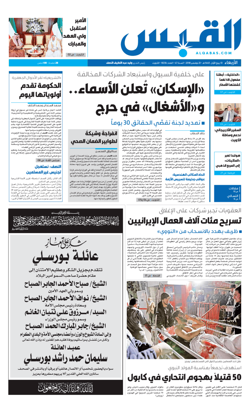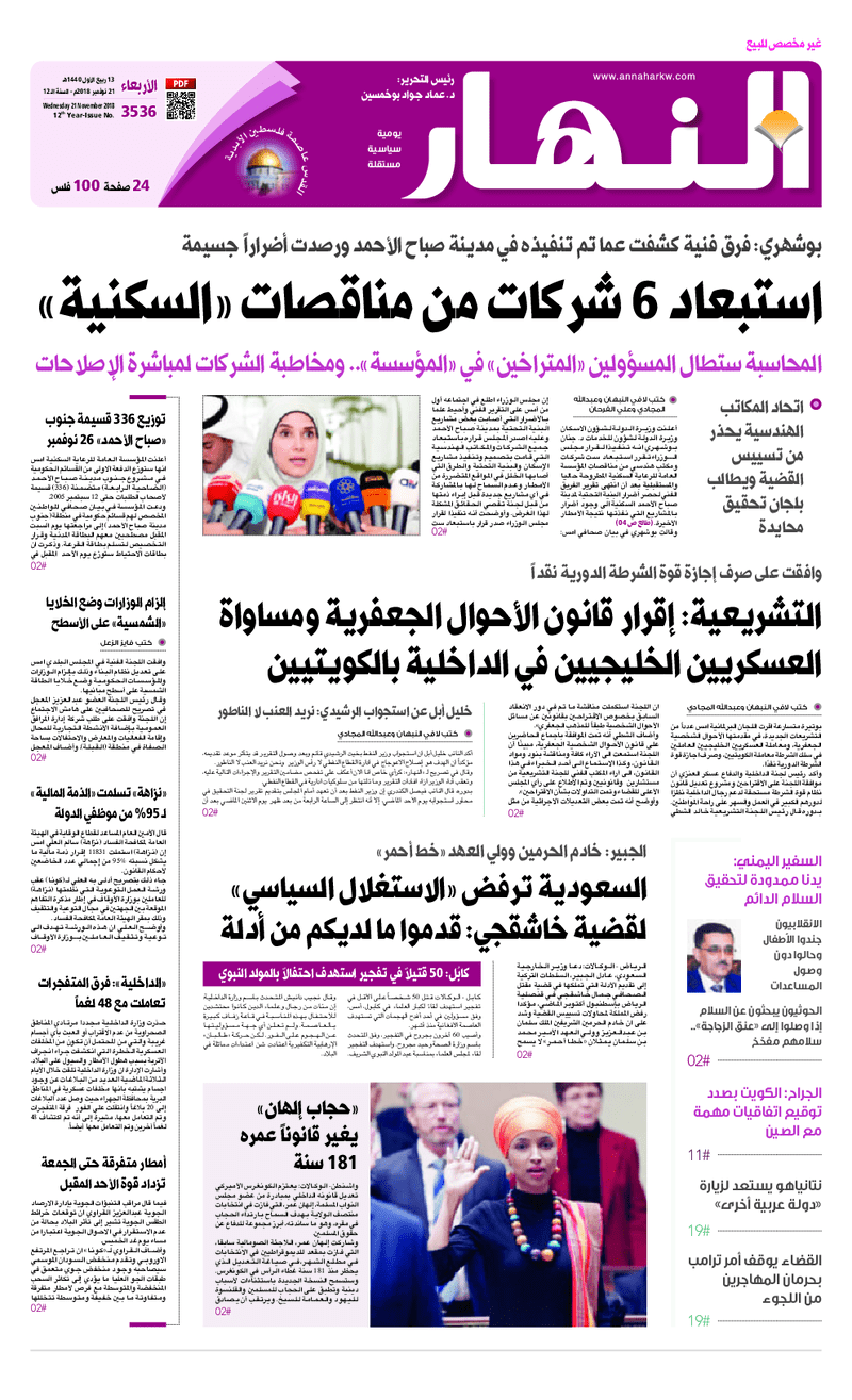 آخر الأخبار جرائم وقضايا “الجمارك” تضبط 29 ألف علبة مشروبات كحولية قادمة من دولة آسيوية في ميناء الشويخ 9 يونيو، 2024 محليات ممثلة عن دولة الكويت الطبيبة الكويتية أسماء الكندري تشارك في المؤتمر العالمي للمناظير في إيطاليا 8 يونيو، 2024 محليات “الصحة”: اكتمال وصول فريق الخدمات الطبية ببعثة الحج الكويتية لمكة المكرمة 8 يونيو، 2024 محليات “الصحة” تحدد 8 مراكز للصحة المدرسية لاستقبال الطلبة المبتعثين 8 يونيو، 2024 عربي وعالمي “الصحة العالمية”: تسجيل أول وفاة لشخص مصاب بـ«أنفلونزا الطيور» 7 يونيو، 2024 محليات عناوين الصحف الكويتية ليوم الأربعاء 21 نوفمبر 2018 محرر المحليات21 نوفمبر، 2018أضف تعليق1 دقائق جريدة الجريدة جريدة الأنباء جريدة القبس جريدة السياسة جريدة الراي جريدة الوسط جريدة النهار الوسومTop عناوين الصحف المحلية من الممكن أن يعجبك جرائم وقضايا “الجمارك” تضبط 29 ألف علبة مشروبات كحولية قادمة من دولة آسيوية في ميناء الشويخ محليات ممثلة عن دولة الكويت الطبيبة الكويتية أسماء الكندري تشارك في المؤتمر العالمي للمناظير في إيطاليا محليات “الصحة”: اكتمال وصول فريق الخدمات الطبية ببعثة الحج الكويتية لمكة المكرمة محليات “الصحة” تحدد 8 مراكز للصحة المدرسية لاستقبال الطلبة المبتعثين عربي وعالمي “الصحة العالمية”: تسجيل أول وفاة لشخص مصاب بـ«أنفلونزا الطيور» تكنولوجيا رش السحب بملح البحر.. تجربة “ثورية” لتبريد كوكب الأرض أضف تعليق أضغط هنا لإضافة تعليق إلغاء الردالتعليقالاسم البريد الإلكتروني الموقع الإلكتروني Δ هذا الموقع يستخدم خدمة أكيسميت للتقليل من البريد المزعجة. اعرف المزيد عن كيفية التعامل مع بيانات التعليقات الخاصة بك processed.