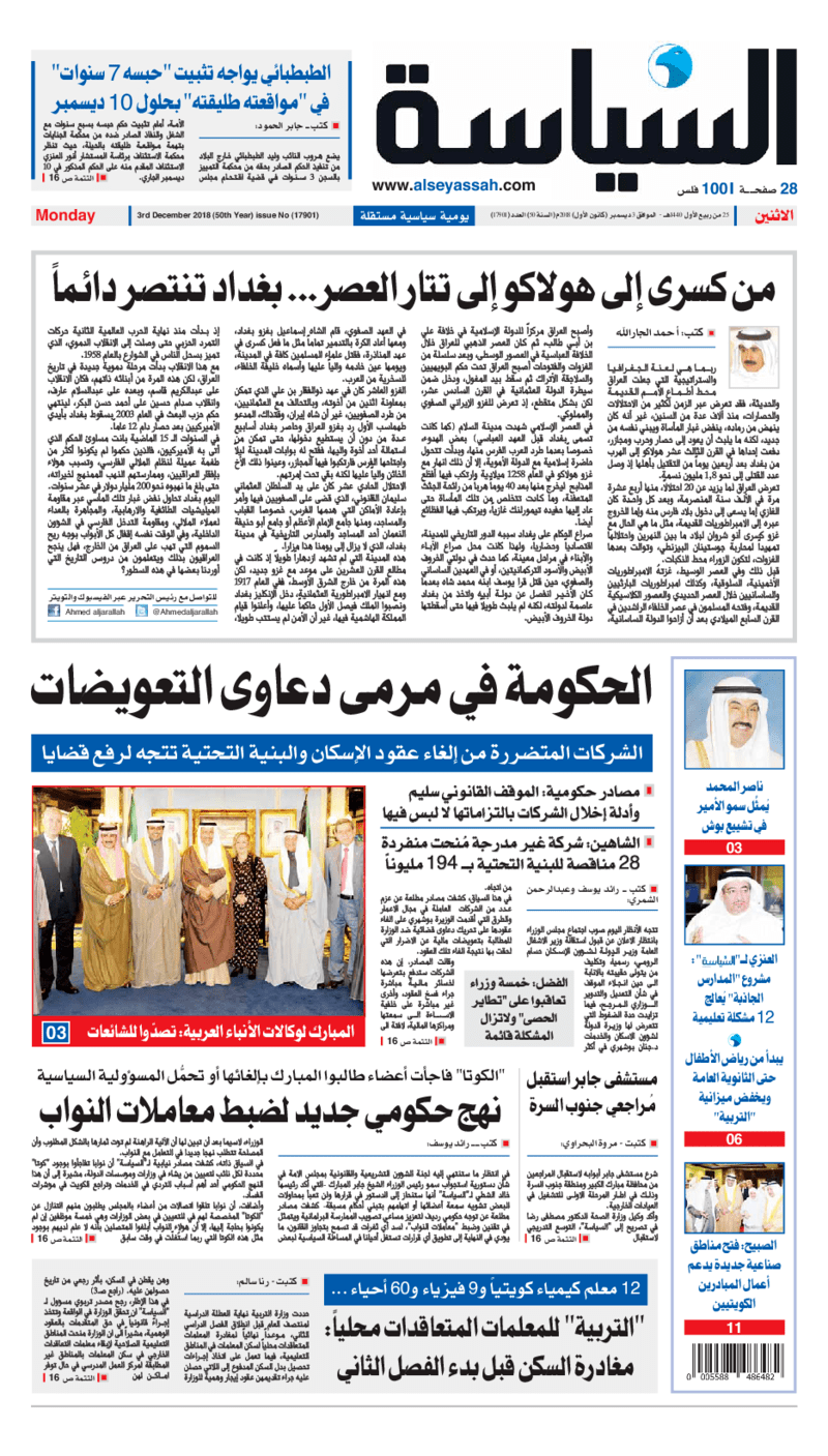 آخر الأخبار جرائم وقضايا “الجمارك” تضبط 29 ألف علبة مشروبات كحولية قادمة من دولة آسيوية في ميناء الشويخ 9 يونيو، 2024 محليات ممثلة عن دولة الكويت الطبيبة الكويتية أسماء الكندري تشارك في المؤتمر العالمي للمناظير في إيطاليا 8 يونيو، 2024 محليات “الصحة”: اكتمال وصول فريق الخدمات الطبية ببعثة الحج الكويتية لمكة المكرمة 8 يونيو، 2024 محليات “الصحة” تحدد 8 مراكز للصحة المدرسية لاستقبال الطلبة المبتعثين 8 يونيو، 2024 عربي وعالمي “الصحة العالمية”: تسجيل أول وفاة لشخص مصاب بـ«أنفلونزا الطيور» 7 يونيو، 2024 محليات عناوين الصحف الكويتية ليوم الاثنين 03 ديسمبر 2018 محرر المحليات3 ديسمبر، 2018أضف تعليق1 دقائق جريدة الجريدة جريدة الأنباء جريدة القبس جريدة السياسة جريدة الوطن جريدة الوسط الوسومTop عناوين الصحف المحلية من الممكن أن يعجبك جرائم وقضايا “الجمارك” تضبط 29 ألف علبة مشروبات كحولية قادمة من دولة آسيوية في ميناء الشويخ محليات ممثلة عن دولة الكويت الطبيبة الكويتية أسماء الكندري تشارك في المؤتمر العالمي للمناظير في إيطاليا محليات “الصحة”: اكتمال وصول فريق الخدمات الطبية ببعثة الحج الكويتية لمكة المكرمة محليات “الصحة” تحدد 8 مراكز للصحة المدرسية لاستقبال الطلبة المبتعثين عربي وعالمي “الصحة العالمية”: تسجيل أول وفاة لشخص مصاب بـ«أنفلونزا الطيور» تكنولوجيا رش السحب بملح البحر.. تجربة “ثورية” لتبريد كوكب الأرض أضف تعليق أضغط هنا لإضافة تعليق إلغاء الردالتعليقالاسم البريد الإلكتروني الموقع الإلكتروني Δ هذا الموقع يستخدم خدمة أكيسميت للتقليل من البريد المزعجة. اعرف المزيد عن كيفية التعامل مع بيانات التعليقات الخاصة بك processed.