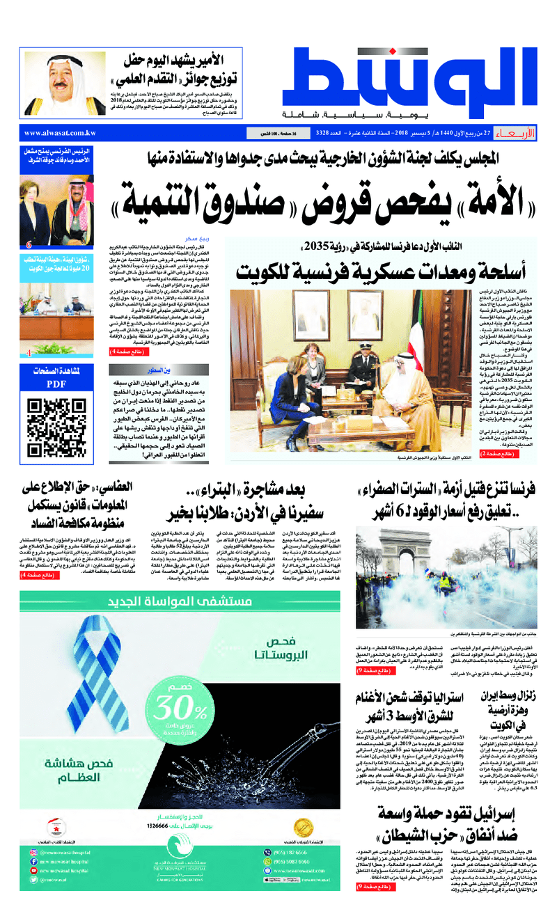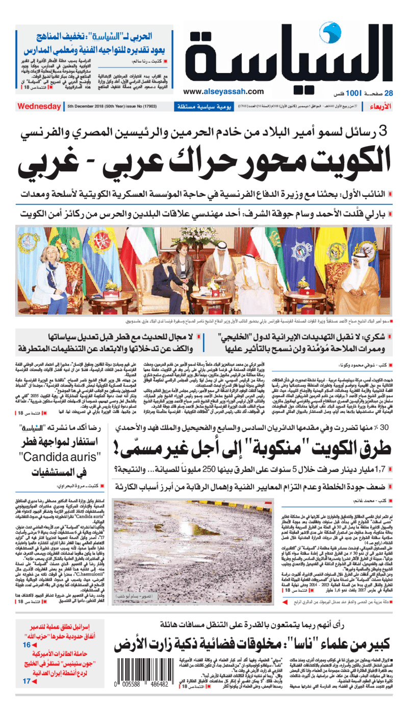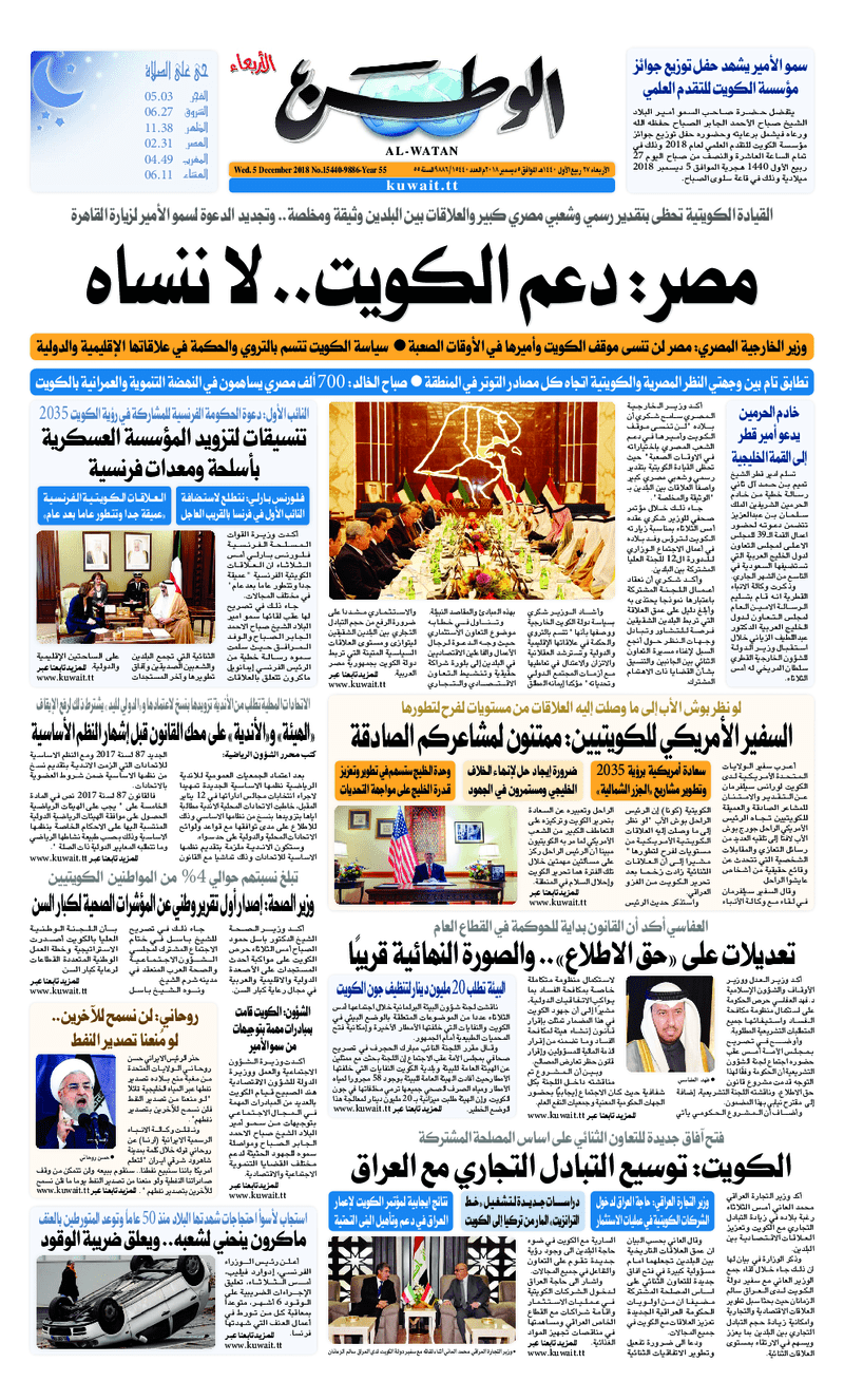 آخر الأخبار جرائم وقضايا “الجمارك” تضبط 29 ألف علبة مشروبات كحولية قادمة من دولة آسيوية في ميناء الشويخ 9 يونيو، 2024 محليات ممثلة عن دولة الكويت الطبيبة الكويتية أسماء الكندري تشارك في المؤتمر العالمي للمناظير في إيطاليا 8 يونيو، 2024 محليات “الصحة”: اكتمال وصول فريق الخدمات الطبية ببعثة الحج الكويتية لمكة المكرمة 8 يونيو، 2024 محليات “الصحة” تحدد 8 مراكز للصحة المدرسية لاستقبال الطلبة المبتعثين 8 يونيو، 2024 عربي وعالمي “الصحة العالمية”: تسجيل أول وفاة لشخص مصاب بـ«أنفلونزا الطيور» 7 يونيو، 2024 محليات عناوين الصحف الكويتية ليوم الأربعاء 05 ديسمبر 2018 محرر المحليات5 ديسمبر، 2018أضف تعليق1 دقائق جريدة الجريدة جريدة الأنباء جريدة القبس جريدة السياسة جريدة الوطن جريدة الوسط جريدة النهار الوسومTop عناوين الصحف المحلية من الممكن أن يعجبك جرائم وقضايا “الجمارك” تضبط 29 ألف علبة مشروبات كحولية قادمة من دولة آسيوية في ميناء الشويخ محليات ممثلة عن دولة الكويت الطبيبة الكويتية أسماء الكندري تشارك في المؤتمر العالمي للمناظير في إيطاليا محليات “الصحة”: اكتمال وصول فريق الخدمات الطبية ببعثة الحج الكويتية لمكة المكرمة محليات “الصحة” تحدد 8 مراكز للصحة المدرسية لاستقبال الطلبة المبتعثين عربي وعالمي “الصحة العالمية”: تسجيل أول وفاة لشخص مصاب بـ«أنفلونزا الطيور» تكنولوجيا رش السحب بملح البحر.. تجربة “ثورية” لتبريد كوكب الأرض أضف تعليق أضغط هنا لإضافة تعليق إلغاء الردالتعليقالاسم البريد الإلكتروني الموقع الإلكتروني Δ هذا الموقع يستخدم خدمة أكيسميت للتقليل من البريد المزعجة. اعرف المزيد عن كيفية التعامل مع بيانات التعليقات الخاصة بك processed.