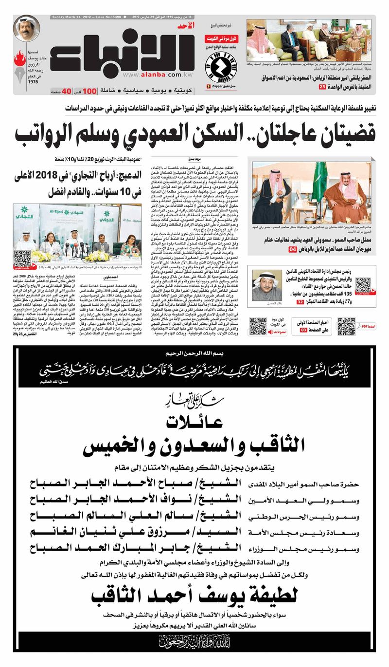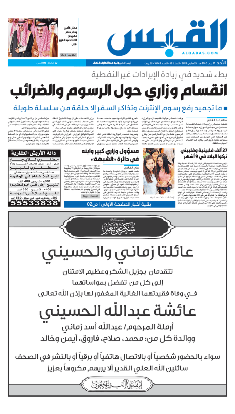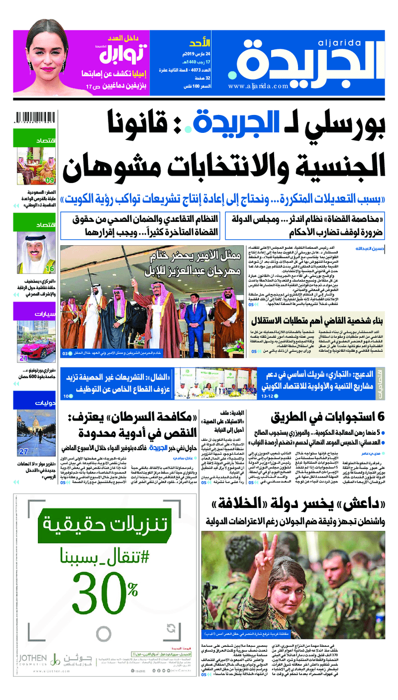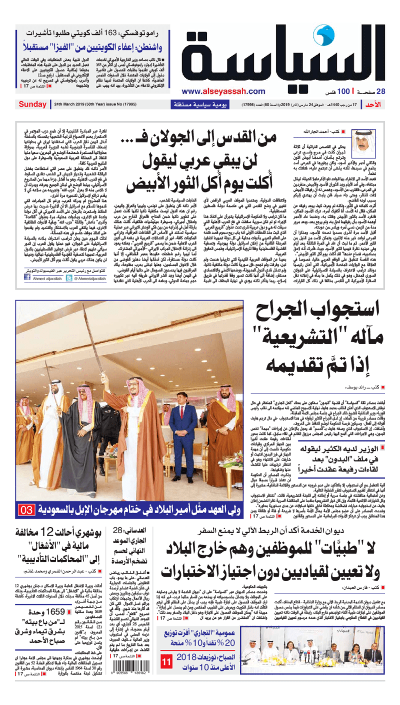 آخر الأخبار جرائم وقضايا “الجمارك” تضبط 29 ألف علبة مشروبات كحولية قادمة من دولة آسيوية في ميناء الشويخ 9 يونيو، 2024 محليات ممثلة عن دولة الكويت الطبيبة الكويتية أسماء الكندري تشارك في المؤتمر العالمي للمناظير في إيطاليا 8 يونيو، 2024 محليات “الصحة”: اكتمال وصول فريق الخدمات الطبية ببعثة الحج الكويتية لمكة المكرمة 8 يونيو، 2024 محليات “الصحة” تحدد 8 مراكز للصحة المدرسية لاستقبال الطلبة المبتعثين 8 يونيو، 2024 عربي وعالمي “الصحة العالمية”: تسجيل أول وفاة لشخص مصاب بـ«أنفلونزا الطيور» 7 يونيو، 2024 محليات عناوين الصحف الكويتية ليوم الأحد 24 مارس 2019 محرر المحليات24 مارس، 2019أضف تعليق1 دقائق جريدة الجريدة جريدة الأنباء جريدة القبس جريدة السياسة جريدة النهار الوسومTop عناوين الصحف المحلية من الممكن أن يعجبك جرائم وقضايا “الجمارك” تضبط 29 ألف علبة مشروبات كحولية قادمة من دولة آسيوية في ميناء الشويخ محليات ممثلة عن دولة الكويت الطبيبة الكويتية أسماء الكندري تشارك في المؤتمر العالمي للمناظير في إيطاليا محليات “الصحة”: اكتمال وصول فريق الخدمات الطبية ببعثة الحج الكويتية لمكة المكرمة محليات “الصحة” تحدد 8 مراكز للصحة المدرسية لاستقبال الطلبة المبتعثين عربي وعالمي “الصحة العالمية”: تسجيل أول وفاة لشخص مصاب بـ«أنفلونزا الطيور» تكنولوجيا رش السحب بملح البحر.. تجربة “ثورية” لتبريد كوكب الأرض أضف تعليق أضغط هنا لإضافة تعليق إلغاء الردالتعليقالاسم البريد الإلكتروني الموقع الإلكتروني Δ هذا الموقع يستخدم خدمة أكيسميت للتقليل من البريد المزعجة. اعرف المزيد عن كيفية التعامل مع بيانات التعليقات الخاصة بك processed.