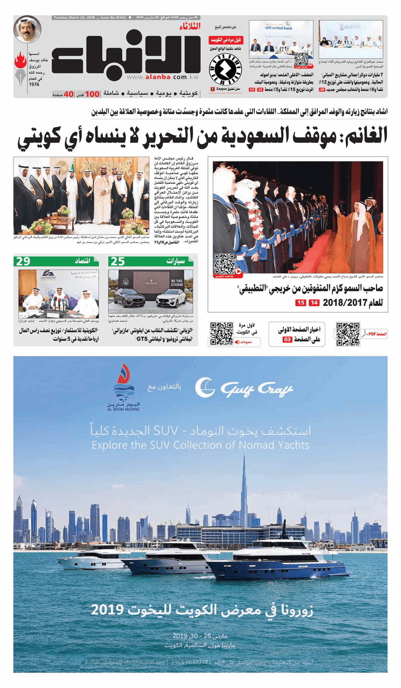 آخر الأخبار جرائم وقضايا “الجمارك” تضبط 29 ألف علبة مشروبات كحولية قادمة من دولة آسيوية في ميناء الشويخ 9 يونيو، 2024 محليات ممثلة عن دولة الكويت الطبيبة الكويتية أسماء الكندري تشارك في المؤتمر العالمي للمناظير في إيطاليا 8 يونيو، 2024 محليات “الصحة”: اكتمال وصول فريق الخدمات الطبية ببعثة الحج الكويتية لمكة المكرمة 8 يونيو، 2024 محليات “الصحة” تحدد 8 مراكز للصحة المدرسية لاستقبال الطلبة المبتعثين 8 يونيو، 2024 عربي وعالمي “الصحة العالمية”: تسجيل أول وفاة لشخص مصاب بـ«أنفلونزا الطيور» 7 يونيو، 2024 محليات عناوين الصحف الكويتية ليوم الثلاثاء 26 مارس 2019 محرر المحليات26 مارس، 2019أضف تعليق1 دقائق جريدة الجريدة جريدة الأنباء جريدة القبس جريدة السياسة جريدة الوطن جريدة الوسط جريدة النهار الوسومTop عناوين الصحف المحلية من الممكن أن يعجبك جرائم وقضايا “الجمارك” تضبط 29 ألف علبة مشروبات كحولية قادمة من دولة آسيوية في ميناء الشويخ محليات ممثلة عن دولة الكويت الطبيبة الكويتية أسماء الكندري تشارك في المؤتمر العالمي للمناظير في إيطاليا محليات “الصحة”: اكتمال وصول فريق الخدمات الطبية ببعثة الحج الكويتية لمكة المكرمة محليات “الصحة” تحدد 8 مراكز للصحة المدرسية لاستقبال الطلبة المبتعثين عربي وعالمي “الصحة العالمية”: تسجيل أول وفاة لشخص مصاب بـ«أنفلونزا الطيور» تكنولوجيا رش السحب بملح البحر.. تجربة “ثورية” لتبريد كوكب الأرض أضف تعليق أضغط هنا لإضافة تعليق إلغاء الردالتعليقالاسم البريد الإلكتروني الموقع الإلكتروني Δ هذا الموقع يستخدم خدمة أكيسميت للتقليل من البريد المزعجة. اعرف المزيد عن كيفية التعامل مع بيانات التعليقات الخاصة بك processed.