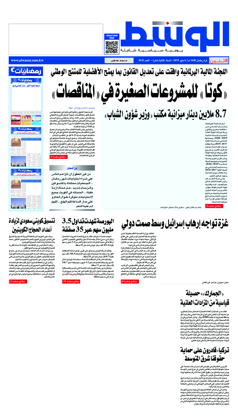 آخر الأخبار جرائم وقضايا “الجمارك” تضبط 29 ألف علبة مشروبات كحولية قادمة من دولة آسيوية في ميناء الشويخ 9 يونيو، 2024 محليات ممثلة عن دولة الكويت الطبيبة الكويتية أسماء الكندري تشارك في المؤتمر العالمي للمناظير في إيطاليا 8 يونيو، 2024 محليات “الصحة”: اكتمال وصول فريق الخدمات الطبية ببعثة الحج الكويتية لمكة المكرمة 8 يونيو، 2024 محليات “الصحة” تحدد 8 مراكز للصحة المدرسية لاستقبال الطلبة المبتعثين 8 يونيو، 2024 عربي وعالمي “الصحة العالمية”: تسجيل أول وفاة لشخص مصاب بـ«أنفلونزا الطيور» 7 يونيو، 2024 محليات عناوين الصحف الكويتية ليوم الاثنين 06 مايو 2019 محرر المحليات6 مايو، 2019أضف تعليق1 دقائق جريدة الجريدة جريدة الأنباء جريدة القبس جريدة السياسة جريدة الوطن جريدة الراي جريدة الوسط جريدة النهار الوسومTop عناوين الصحف المحلية من الممكن أن يعجبك جرائم وقضايا “الجمارك” تضبط 29 ألف علبة مشروبات كحولية قادمة من دولة آسيوية في ميناء الشويخ محليات ممثلة عن دولة الكويت الطبيبة الكويتية أسماء الكندري تشارك في المؤتمر العالمي للمناظير في إيطاليا محليات “الصحة”: اكتمال وصول فريق الخدمات الطبية ببعثة الحج الكويتية لمكة المكرمة محليات “الصحة” تحدد 8 مراكز للصحة المدرسية لاستقبال الطلبة المبتعثين عربي وعالمي “الصحة العالمية”: تسجيل أول وفاة لشخص مصاب بـ«أنفلونزا الطيور» تكنولوجيا رش السحب بملح البحر.. تجربة “ثورية” لتبريد كوكب الأرض أضف تعليق أضغط هنا لإضافة تعليق إلغاء الردالتعليقالاسم البريد الإلكتروني الموقع الإلكتروني Δ هذا الموقع يستخدم خدمة أكيسميت للتقليل من البريد المزعجة. اعرف المزيد عن كيفية التعامل مع بيانات التعليقات الخاصة بك processed.
