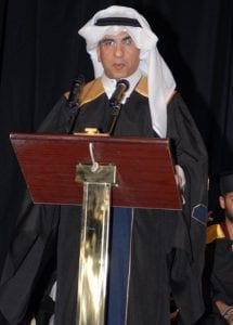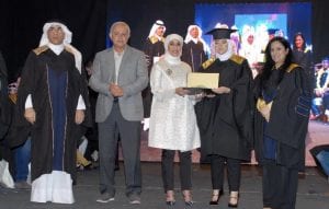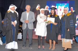 وأضاف: “إننا في المعهد العالي للفنون للمسرحية، إذ نحتفل ابتهاجا بكم أيها الابناء الخريجون فإننا نوصيكم أول ما نوصيكم بالاهتمام بأنفســكم والاســـتمرار في طريق العلم واكتســــاب الدرجات العليا في شـــــتى المعارف والعلوم كل في مجاله وتخصصه، وأوصيكم أيضا بالحرص الشديد على القيام بواجبكم بالعمل على رد الجميل للكويت ببذل كل غال ونفيس لخدمة الفن والثقافة الكويتية؛ والمحافظة على مكتسباتنا الحضارية، وفي الختام باسمي وباسم كافة أعضاء هيئة التدريس، أبتهل إلى المولى أن ن يجعل التوفيق حليفكم والنجاح طريقكم دائما وأبدا ونسأله تعالى أن يحفظ بلادنا وولي أمرنا سمو أمير الإنسانية الشيخ صباح الأحمد الجابر الصباح”.