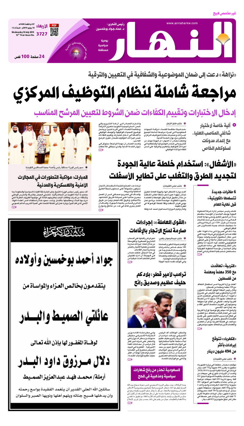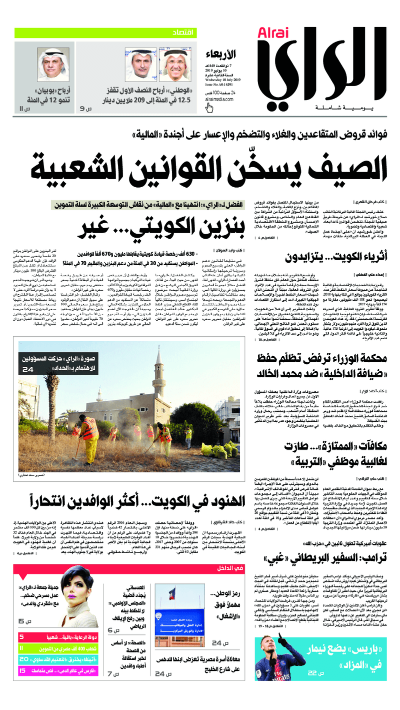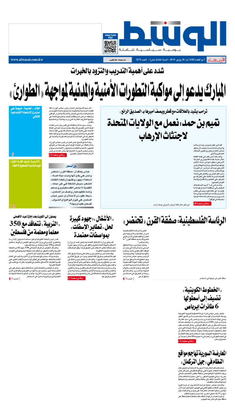 آخر الأخبار جرائم وقضايا “الجمارك” تضبط 29 ألف علبة مشروبات كحولية قادمة من دولة آسيوية في ميناء الشويخ 9 يونيو، 2024 محليات ممثلة عن دولة الكويت الطبيبة الكويتية أسماء الكندري تشارك في المؤتمر العالمي للمناظير في إيطاليا 8 يونيو، 2024 محليات “الصحة”: اكتمال وصول فريق الخدمات الطبية ببعثة الحج الكويتية لمكة المكرمة 8 يونيو، 2024 محليات “الصحة” تحدد 8 مراكز للصحة المدرسية لاستقبال الطلبة المبتعثين 8 يونيو، 2024 عربي وعالمي “الصحة العالمية”: تسجيل أول وفاة لشخص مصاب بـ«أنفلونزا الطيور» 7 يونيو، 2024 محليات عناوين الصحف الكويتية ليوم الأربعاء 10 يوليو 2019 محرر المحليات10 يوليو، 2019أضف تعليق1 دقائق جريدة الجريدة جريدة الأنباء جريدة السياسة جريدة الوطن جريدة الراي جريدة الوسط جريدة النهار الوسومTop عناوين الصحف المحلية من الممكن أن يعجبك جرائم وقضايا “الجمارك” تضبط 29 ألف علبة مشروبات كحولية قادمة من دولة آسيوية في ميناء الشويخ محليات ممثلة عن دولة الكويت الطبيبة الكويتية أسماء الكندري تشارك في المؤتمر العالمي للمناظير في إيطاليا محليات “الصحة”: اكتمال وصول فريق الخدمات الطبية ببعثة الحج الكويتية لمكة المكرمة محليات “الصحة” تحدد 8 مراكز للصحة المدرسية لاستقبال الطلبة المبتعثين عربي وعالمي “الصحة العالمية”: تسجيل أول وفاة لشخص مصاب بـ«أنفلونزا الطيور» تكنولوجيا رش السحب بملح البحر.. تجربة “ثورية” لتبريد كوكب الأرض أضف تعليق أضغط هنا لإضافة تعليق إلغاء الردالتعليقالاسم البريد الإلكتروني الموقع الإلكتروني Δ هذا الموقع يستخدم خدمة أكيسميت للتقليل من البريد المزعجة. اعرف المزيد عن كيفية التعامل مع بيانات التعليقات الخاصة بك processed.