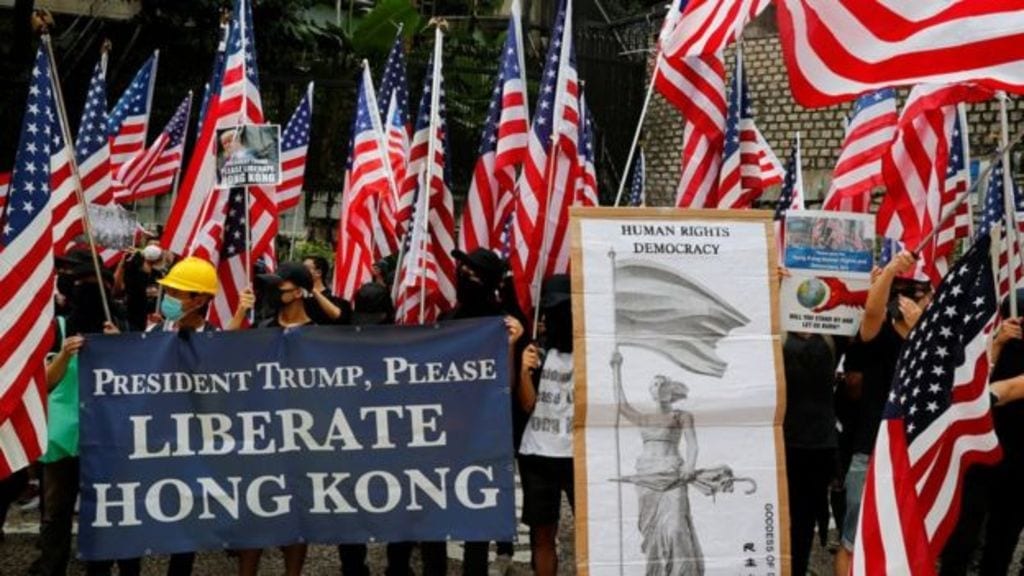 وحمل بعضهم لافتات تحمل الشعار “الرئيس ترامب أنقذ هونغ كونغ” و “إجعل هونغ كونغ عظيمة مرة أخرى”.