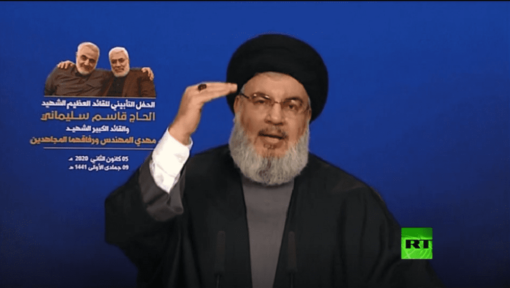 وقال نصر الله في كلمة متلفزة بمناسبة تأبين اللواء قاسم سليماني وأبو مهدي المهندس ورفاقهما، إن فشل كل حالات الاغتيال السابقة لسليماني دفع واشنطن لقتله بهذه الطريقة العلنية.