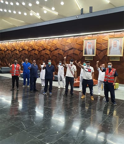 وصلت الى لدفعة الثالثة والأخيرة من الكوادر الصحية العالقة في الهند، والذين يبلغ عددهم 289 بين طبيب وممرض وفني، حيث تم اجراء المسحات الطبية لهم ونقلهم للسكن في مدينة جابر الاحمد.