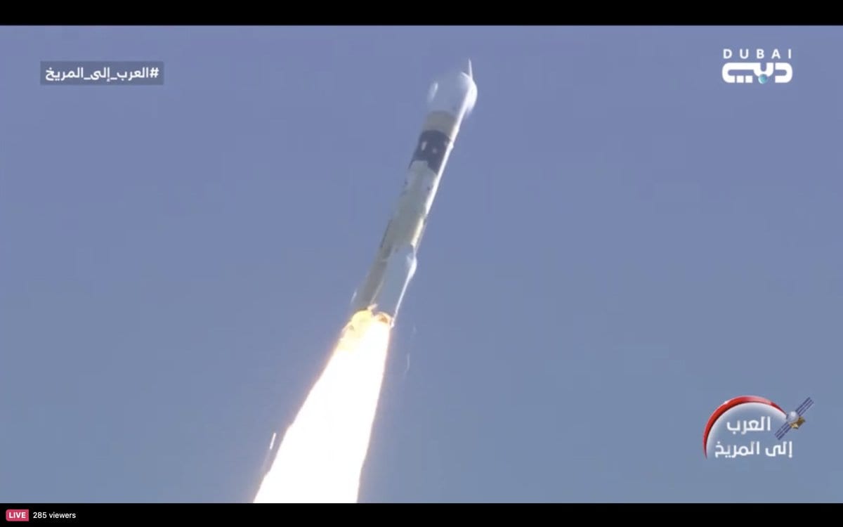 انطلق (مسبار الأمل) الاماراتي اليوم الاحد من مركز (تانيغاشيما) الفضائي في اليابان على متن صاروخ الاطلاق (اتش 2 ايه) في رحلته التاريخية لاستكشاف المريخ.