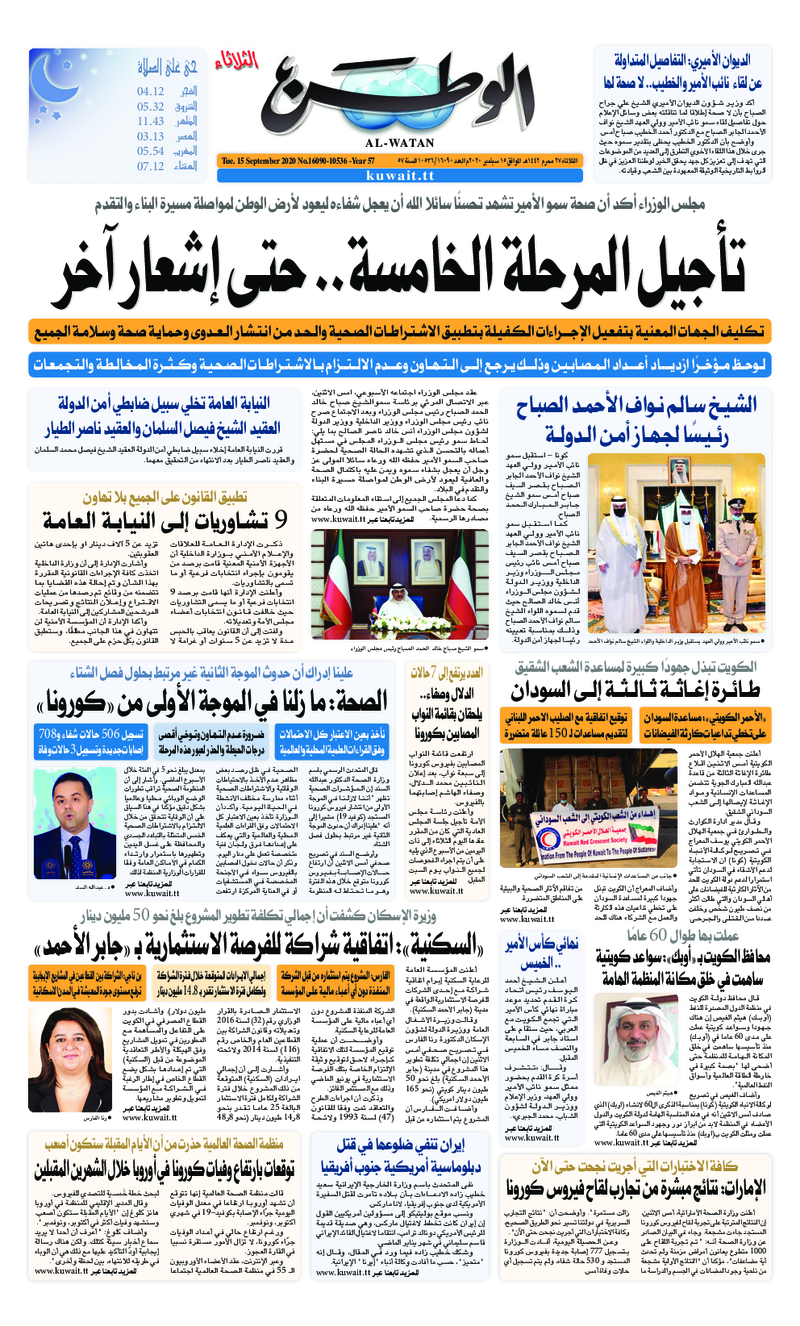 آخر الأخبار جرائم وقضايا “الجمارك” تضبط 29 ألف علبة مشروبات كحولية قادمة من دولة آسيوية في ميناء الشويخ 9 يونيو، 2024 محليات ممثلة عن دولة الكويت الطبيبة الكويتية أسماء الكندري تشارك في المؤتمر العالمي للمناظير في إيطاليا 8 يونيو، 2024 محليات “الصحة”: اكتمال وصول فريق الخدمات الطبية ببعثة الحج الكويتية لمكة المكرمة 8 يونيو، 2024 محليات “الصحة” تحدد 8 مراكز للصحة المدرسية لاستقبال الطلبة المبتعثين 8 يونيو، 2024 عربي وعالمي “الصحة العالمية”: تسجيل أول وفاة لشخص مصاب بـ«أنفلونزا الطيور» 7 يونيو، 2024 محليات عناوين الصحف الكويتية ليوم الثلاثاء 15 سبتمبر 2020 محرر المحليات15 سبتمبر، 2020أضف تعليق1 دقائق جريدة الجريدة جريدة الأنباء جريدة القبس جريدة الوطن جريدة الراي جريدة الوسط الوسومTop عناوين الصحف المحلية من الممكن أن يعجبك جرائم وقضايا “الجمارك” تضبط 29 ألف علبة مشروبات كحولية قادمة من دولة آسيوية في ميناء الشويخ محليات ممثلة عن دولة الكويت الطبيبة الكويتية أسماء الكندري تشارك في المؤتمر العالمي للمناظير في إيطاليا محليات “الصحة”: اكتمال وصول فريق الخدمات الطبية ببعثة الحج الكويتية لمكة المكرمة محليات “الصحة” تحدد 8 مراكز للصحة المدرسية لاستقبال الطلبة المبتعثين عربي وعالمي “الصحة العالمية”: تسجيل أول وفاة لشخص مصاب بـ«أنفلونزا الطيور» تكنولوجيا رش السحب بملح البحر.. تجربة “ثورية” لتبريد كوكب الأرض أضف تعليق أضغط هنا لإضافة تعليق إلغاء الردالتعليقالاسم البريد الإلكتروني الموقع الإلكتروني Δ هذا الموقع يستخدم خدمة أكيسميت للتقليل من البريد المزعجة. اعرف المزيد عن كيفية التعامل مع بيانات التعليقات الخاصة بك processed.