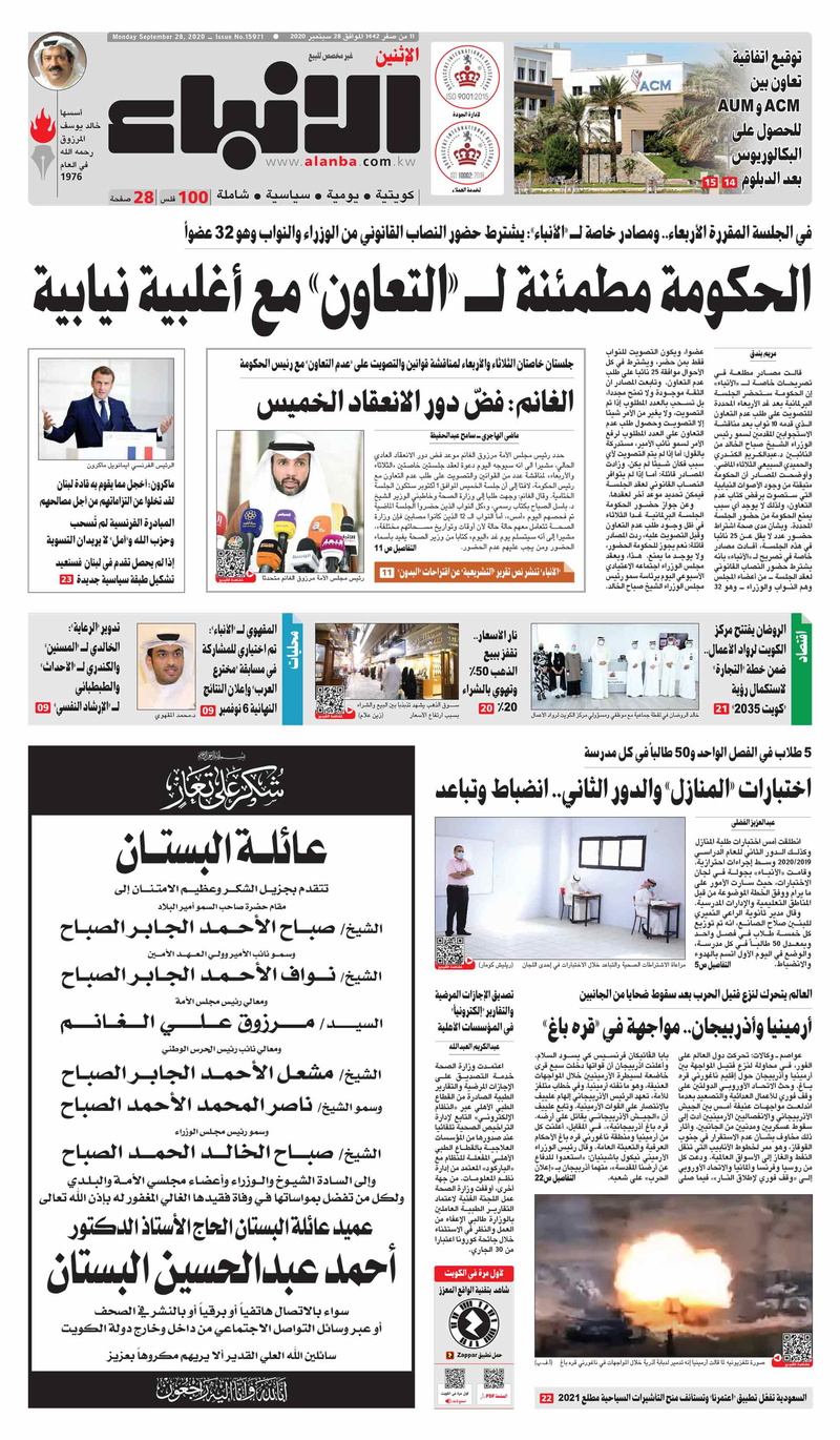 آخر الأخبار جرائم وقضايا “الجمارك” تضبط 29 ألف علبة مشروبات كحولية قادمة من دولة آسيوية في ميناء الشويخ 9 يونيو، 2024 محليات ممثلة عن دولة الكويت الطبيبة الكويتية أسماء الكندري تشارك في المؤتمر العالمي للمناظير في إيطاليا 8 يونيو، 2024 محليات “الصحة”: اكتمال وصول فريق الخدمات الطبية ببعثة الحج الكويتية لمكة المكرمة 8 يونيو، 2024 محليات “الصحة” تحدد 8 مراكز للصحة المدرسية لاستقبال الطلبة المبتعثين 8 يونيو، 2024 عربي وعالمي “الصحة العالمية”: تسجيل أول وفاة لشخص مصاب بـ«أنفلونزا الطيور» 7 يونيو، 2024 محليات عناوين الصحف الكويتية ليوم الاثنين 28 سبتمبر 2020 محرر المحليات28 سبتمبر، 2020أضف تعليق1 دقائق جريدة الجريدة جريدة الأنباء جريدة القبس جريدة الوطن الوسومTop عناوين الصحف المحلية من الممكن أن يعجبك جرائم وقضايا “الجمارك” تضبط 29 ألف علبة مشروبات كحولية قادمة من دولة آسيوية في ميناء الشويخ محليات ممثلة عن دولة الكويت الطبيبة الكويتية أسماء الكندري تشارك في المؤتمر العالمي للمناظير في إيطاليا محليات “الصحة”: اكتمال وصول فريق الخدمات الطبية ببعثة الحج الكويتية لمكة المكرمة محليات “الصحة” تحدد 8 مراكز للصحة المدرسية لاستقبال الطلبة المبتعثين عربي وعالمي “الصحة العالمية”: تسجيل أول وفاة لشخص مصاب بـ«أنفلونزا الطيور» تكنولوجيا رش السحب بملح البحر.. تجربة “ثورية” لتبريد كوكب الأرض أضف تعليق أضغط هنا لإضافة تعليق إلغاء الردالتعليقالاسم البريد الإلكتروني الموقع الإلكتروني Δ هذا الموقع يستخدم خدمة أكيسميت للتقليل من البريد المزعجة. اعرف المزيد عن كيفية التعامل مع بيانات التعليقات الخاصة بك processed.