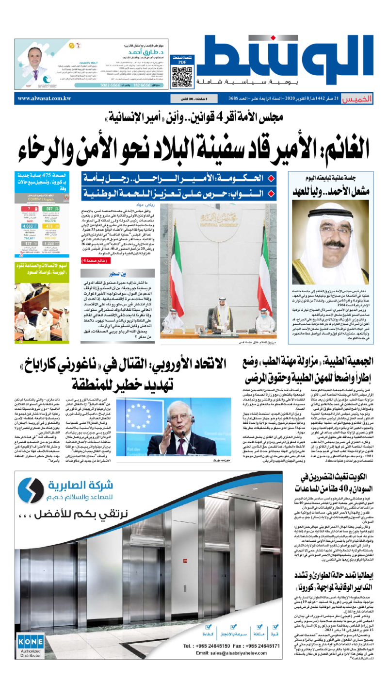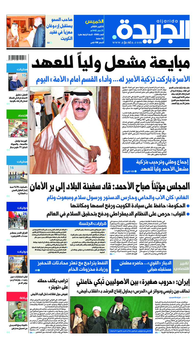 آخر الأخبار جرائم وقضايا “الجمارك” تضبط 29 ألف علبة مشروبات كحولية قادمة من دولة آسيوية في ميناء الشويخ 9 يونيو، 2024 محليات ممثلة عن دولة الكويت الطبيبة الكويتية أسماء الكندري تشارك في المؤتمر العالمي للمناظير في إيطاليا 8 يونيو، 2024 محليات “الصحة”: اكتمال وصول فريق الخدمات الطبية ببعثة الحج الكويتية لمكة المكرمة 8 يونيو، 2024 محليات “الصحة” تحدد 8 مراكز للصحة المدرسية لاستقبال الطلبة المبتعثين 8 يونيو، 2024 عربي وعالمي “الصحة العالمية”: تسجيل أول وفاة لشخص مصاب بـ«أنفلونزا الطيور» 7 يونيو، 2024 محليات عناوين الصحف الكويتية ليوم الخميس 08 أكتوبر 2020 محرر المحليات8 أكتوبر، 2020أضف تعليق1 دقائق جريدة الجريدة جريدة الأنباء جريدة القبس جريدة الوسط الوسومTop عناوين الصحف المحلية من الممكن أن يعجبك جرائم وقضايا “الجمارك” تضبط 29 ألف علبة مشروبات كحولية قادمة من دولة آسيوية في ميناء الشويخ محليات ممثلة عن دولة الكويت الطبيبة الكويتية أسماء الكندري تشارك في المؤتمر العالمي للمناظير في إيطاليا محليات “الصحة”: اكتمال وصول فريق الخدمات الطبية ببعثة الحج الكويتية لمكة المكرمة محليات “الصحة” تحدد 8 مراكز للصحة المدرسية لاستقبال الطلبة المبتعثين عربي وعالمي “الصحة العالمية”: تسجيل أول وفاة لشخص مصاب بـ«أنفلونزا الطيور» تكنولوجيا رش السحب بملح البحر.. تجربة “ثورية” لتبريد كوكب الأرض أضف تعليق أضغط هنا لإضافة تعليق إلغاء الردالتعليقالاسم البريد الإلكتروني الموقع الإلكتروني Δ هذا الموقع يستخدم خدمة أكيسميت للتقليل من البريد المزعجة. اعرف المزيد عن كيفية التعامل مع بيانات التعليقات الخاصة بك processed.