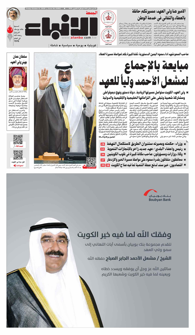 آخر الأخبار جرائم وقضايا “الجمارك” تضبط 29 ألف علبة مشروبات كحولية قادمة من دولة آسيوية في ميناء الشويخ 9 يونيو، 2024 محليات ممثلة عن دولة الكويت الطبيبة الكويتية أسماء الكندري تشارك في المؤتمر العالمي للمناظير في إيطاليا 8 يونيو، 2024 محليات “الصحة”: اكتمال وصول فريق الخدمات الطبية ببعثة الحج الكويتية لمكة المكرمة 8 يونيو، 2024 محليات “الصحة” تحدد 8 مراكز للصحة المدرسية لاستقبال الطلبة المبتعثين 8 يونيو، 2024 عربي وعالمي “الصحة العالمية”: تسجيل أول وفاة لشخص مصاب بـ«أنفلونزا الطيور» 7 يونيو، 2024 محليات عناوين الصحف الكويتية ليوم الجمعة 09 أكتوبر 2020 محرر المحليات9 أكتوبر، 2020أضف تعليق1 دقائق جريدة الجريدة جريدة الأنباء جريدة القبس جريدة الوطن الوسومTop عناوين الصحف المحلية من الممكن أن يعجبك جرائم وقضايا “الجمارك” تضبط 29 ألف علبة مشروبات كحولية قادمة من دولة آسيوية في ميناء الشويخ محليات ممثلة عن دولة الكويت الطبيبة الكويتية أسماء الكندري تشارك في المؤتمر العالمي للمناظير في إيطاليا محليات “الصحة”: اكتمال وصول فريق الخدمات الطبية ببعثة الحج الكويتية لمكة المكرمة محليات “الصحة” تحدد 8 مراكز للصحة المدرسية لاستقبال الطلبة المبتعثين عربي وعالمي “الصحة العالمية”: تسجيل أول وفاة لشخص مصاب بـ«أنفلونزا الطيور» تكنولوجيا رش السحب بملح البحر.. تجربة “ثورية” لتبريد كوكب الأرض أضف تعليق أضغط هنا لإضافة تعليق إلغاء الردالتعليقالاسم البريد الإلكتروني الموقع الإلكتروني Δ هذا الموقع يستخدم خدمة أكيسميت للتقليل من البريد المزعجة. اعرف المزيد عن كيفية التعامل مع بيانات التعليقات الخاصة بك processed.