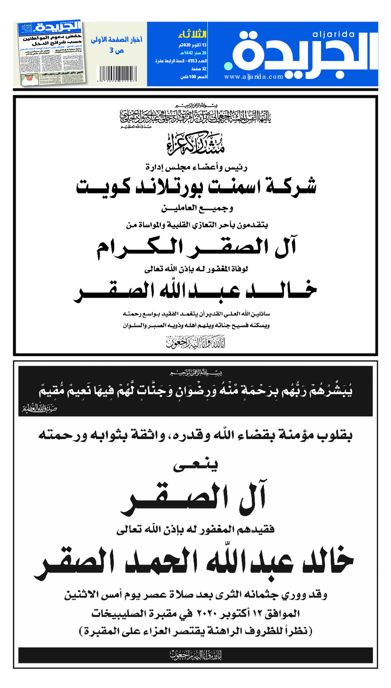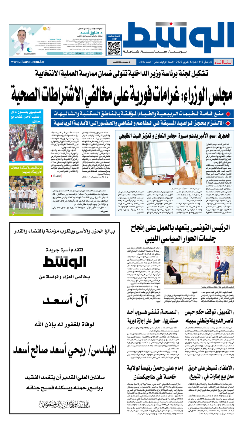 آخر الأخبار جرائم وقضايا “الجمارك” تضبط 29 ألف علبة مشروبات كحولية قادمة من دولة آسيوية في ميناء الشويخ 9 يونيو، 2024 محليات ممثلة عن دولة الكويت الطبيبة الكويتية أسماء الكندري تشارك في المؤتمر العالمي للمناظير في إيطاليا 8 يونيو، 2024 محليات “الصحة”: اكتمال وصول فريق الخدمات الطبية ببعثة الحج الكويتية لمكة المكرمة 8 يونيو، 2024 محليات “الصحة” تحدد 8 مراكز للصحة المدرسية لاستقبال الطلبة المبتعثين 8 يونيو، 2024 عربي وعالمي “الصحة العالمية”: تسجيل أول وفاة لشخص مصاب بـ«أنفلونزا الطيور» 7 يونيو، 2024 محليات عناوين الصحف الكويتية ليوم الثلاثاء 13 أكتوبر 2020 محرر المحليات13 أكتوبر، 2020أضف تعليق1 دقائق جريدة الجريدة جريدة الأنباء جريدة القبس جريدة الوسط الوسومTop عناوين الصحف المحلية من الممكن أن يعجبك جرائم وقضايا “الجمارك” تضبط 29 ألف علبة مشروبات كحولية قادمة من دولة آسيوية في ميناء الشويخ محليات ممثلة عن دولة الكويت الطبيبة الكويتية أسماء الكندري تشارك في المؤتمر العالمي للمناظير في إيطاليا محليات “الصحة”: اكتمال وصول فريق الخدمات الطبية ببعثة الحج الكويتية لمكة المكرمة محليات “الصحة” تحدد 8 مراكز للصحة المدرسية لاستقبال الطلبة المبتعثين عربي وعالمي “الصحة العالمية”: تسجيل أول وفاة لشخص مصاب بـ«أنفلونزا الطيور» تكنولوجيا رش السحب بملح البحر.. تجربة “ثورية” لتبريد كوكب الأرض أضف تعليق أضغط هنا لإضافة تعليق إلغاء الردالتعليقالاسم البريد الإلكتروني الموقع الإلكتروني Δ هذا الموقع يستخدم خدمة أكيسميت للتقليل من البريد المزعجة. اعرف المزيد عن كيفية التعامل مع بيانات التعليقات الخاصة بك processed.