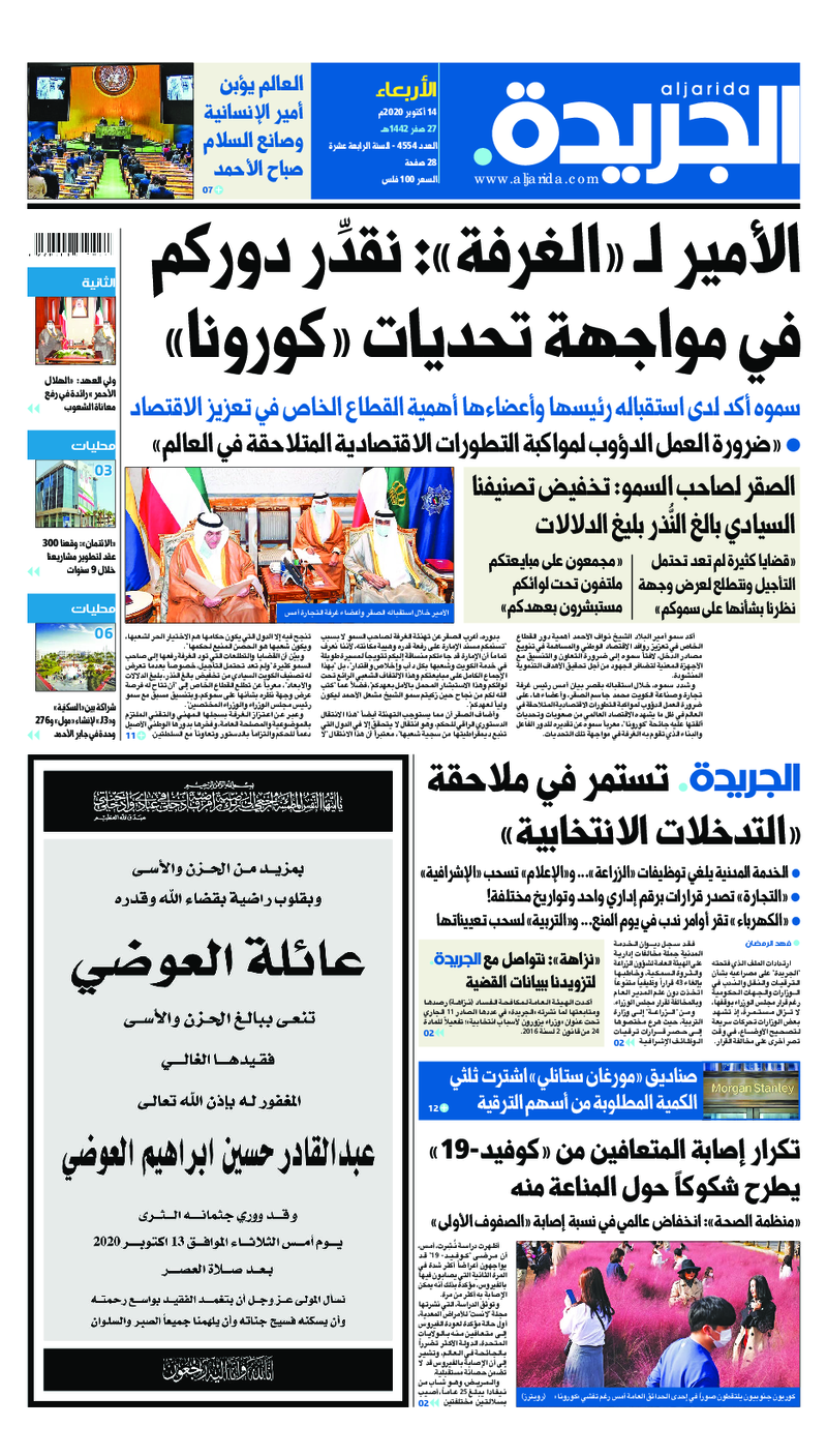آخر الأخبار جرائم وقضايا “الجمارك” تضبط 29 ألف علبة مشروبات كحولية قادمة من دولة آسيوية في ميناء الشويخ 9 يونيو، 2024 محليات ممثلة عن دولة الكويت الطبيبة الكويتية أسماء الكندري تشارك في المؤتمر العالمي للمناظير في إيطاليا 8 يونيو، 2024 محليات “الصحة”: اكتمال وصول فريق الخدمات الطبية ببعثة الحج الكويتية لمكة المكرمة 8 يونيو، 2024 محليات “الصحة” تحدد 8 مراكز للصحة المدرسية لاستقبال الطلبة المبتعثين 8 يونيو، 2024 عربي وعالمي “الصحة العالمية”: تسجيل أول وفاة لشخص مصاب بـ«أنفلونزا الطيور» 7 يونيو، 2024 محليات عناوين الصحف الكويتية ليوم الأربعاء 14 أكتوبر 2020 محرر المحليات14 أكتوبر، 2020أضف تعليق1 دقائق جريدة الجريدة جريدة الأنباء جريدة القبس جريدة الوسط الوسومTop عناوين الصحف المحلية من الممكن أن يعجبك جرائم وقضايا “الجمارك” تضبط 29 ألف علبة مشروبات كحولية قادمة من دولة آسيوية في ميناء الشويخ محليات ممثلة عن دولة الكويت الطبيبة الكويتية أسماء الكندري تشارك في المؤتمر العالمي للمناظير في إيطاليا محليات “الصحة”: اكتمال وصول فريق الخدمات الطبية ببعثة الحج الكويتية لمكة المكرمة محليات “الصحة” تحدد 8 مراكز للصحة المدرسية لاستقبال الطلبة المبتعثين عربي وعالمي “الصحة العالمية”: تسجيل أول وفاة لشخص مصاب بـ«أنفلونزا الطيور» تكنولوجيا رش السحب بملح البحر.. تجربة “ثورية” لتبريد كوكب الأرض أضف تعليق أضغط هنا لإضافة تعليق إلغاء الردالتعليقالاسم البريد الإلكتروني الموقع الإلكتروني Δ هذا الموقع يستخدم خدمة أكيسميت للتقليل من البريد المزعجة. اعرف المزيد عن كيفية التعامل مع بيانات التعليقات الخاصة بك processed.