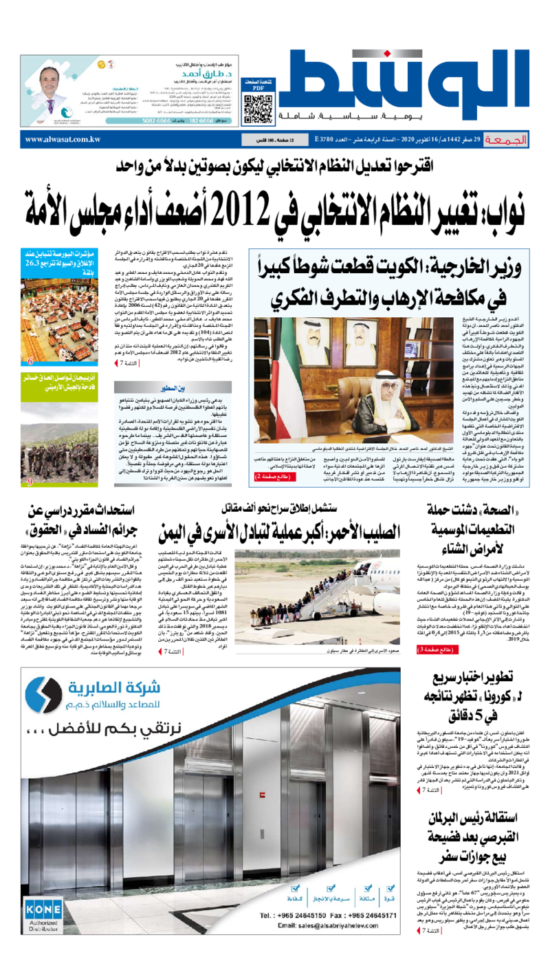 آخر الأخبار جرائم وقضايا “الجمارك” تضبط 29 ألف علبة مشروبات كحولية قادمة من دولة آسيوية في ميناء الشويخ 9 يونيو، 2024 محليات ممثلة عن دولة الكويت الطبيبة الكويتية أسماء الكندري تشارك في المؤتمر العالمي للمناظير في إيطاليا 8 يونيو، 2024 محليات “الصحة”: اكتمال وصول فريق الخدمات الطبية ببعثة الحج الكويتية لمكة المكرمة 8 يونيو، 2024 محليات “الصحة” تحدد 8 مراكز للصحة المدرسية لاستقبال الطلبة المبتعثين 8 يونيو، 2024 عربي وعالمي “الصحة العالمية”: تسجيل أول وفاة لشخص مصاب بـ«أنفلونزا الطيور» 7 يونيو، 2024 محليات عناوين الصحف الكويتية ليوم السبت 17 أكتوبر 2020 محرر المحليات17 أكتوبر، 2020أضف تعليق1 دقائق جريدة الوسط الوسومTop عناوين الصحف المحلية من الممكن أن يعجبك جرائم وقضايا “الجمارك” تضبط 29 ألف علبة مشروبات كحولية قادمة من دولة آسيوية في ميناء الشويخ محليات ممثلة عن دولة الكويت الطبيبة الكويتية أسماء الكندري تشارك في المؤتمر العالمي للمناظير في إيطاليا محليات “الصحة”: اكتمال وصول فريق الخدمات الطبية ببعثة الحج الكويتية لمكة المكرمة محليات “الصحة” تحدد 8 مراكز للصحة المدرسية لاستقبال الطلبة المبتعثين عربي وعالمي “الصحة العالمية”: تسجيل أول وفاة لشخص مصاب بـ«أنفلونزا الطيور» تكنولوجيا رش السحب بملح البحر.. تجربة “ثورية” لتبريد كوكب الأرض أضف تعليق أضغط هنا لإضافة تعليق إلغاء الردالتعليقالاسم البريد الإلكتروني الموقع الإلكتروني Δ هذا الموقع يستخدم خدمة أكيسميت للتقليل من البريد المزعجة. اعرف المزيد عن كيفية التعامل مع بيانات التعليقات الخاصة بك processed.