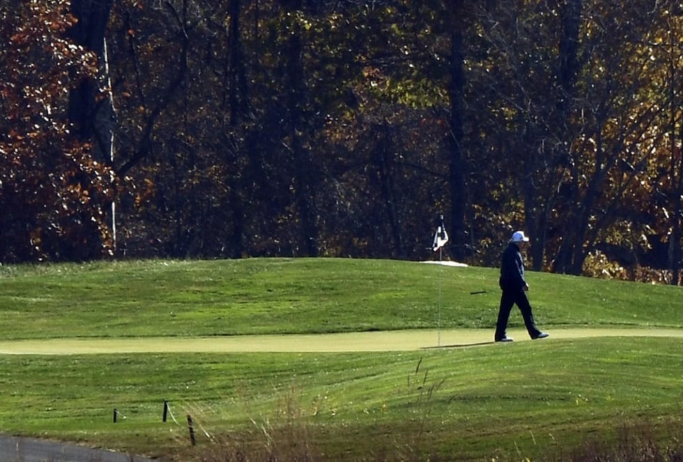 شوهد الرئيس الأمريكي دونالد ترامب وهو بصدد ممارسة رياضة الغولف في ولاية فيرجينيا، بعد وقت قصير من إعلان منافسه جو بايدن فوزه بالسباق الرئاسي.